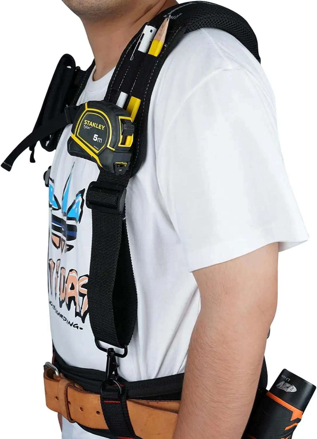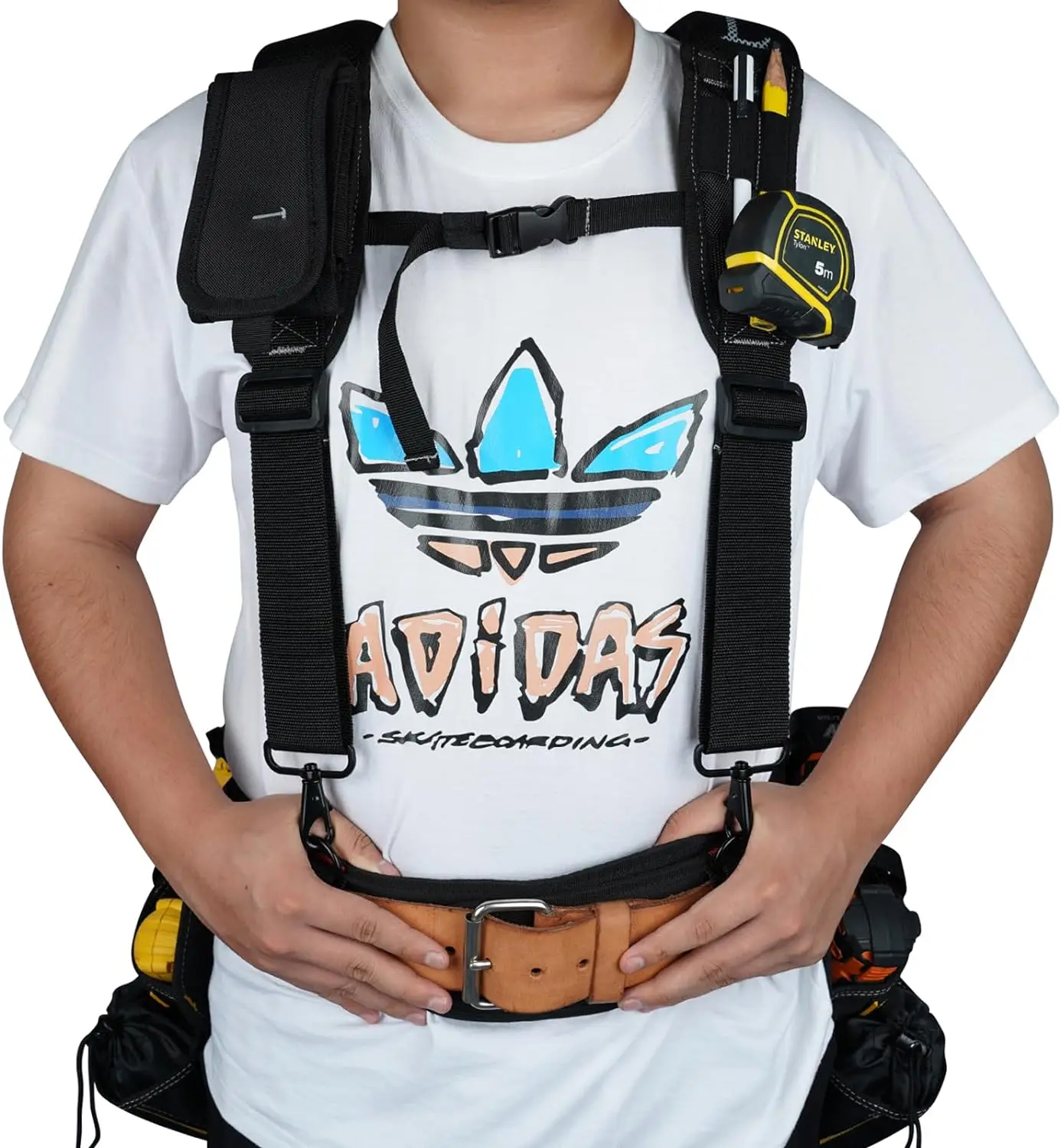 ADJUSTABILITY: The universal size tool bag suspenders helps you adjust to the length that fits your body.Front and back straps are adjustable.