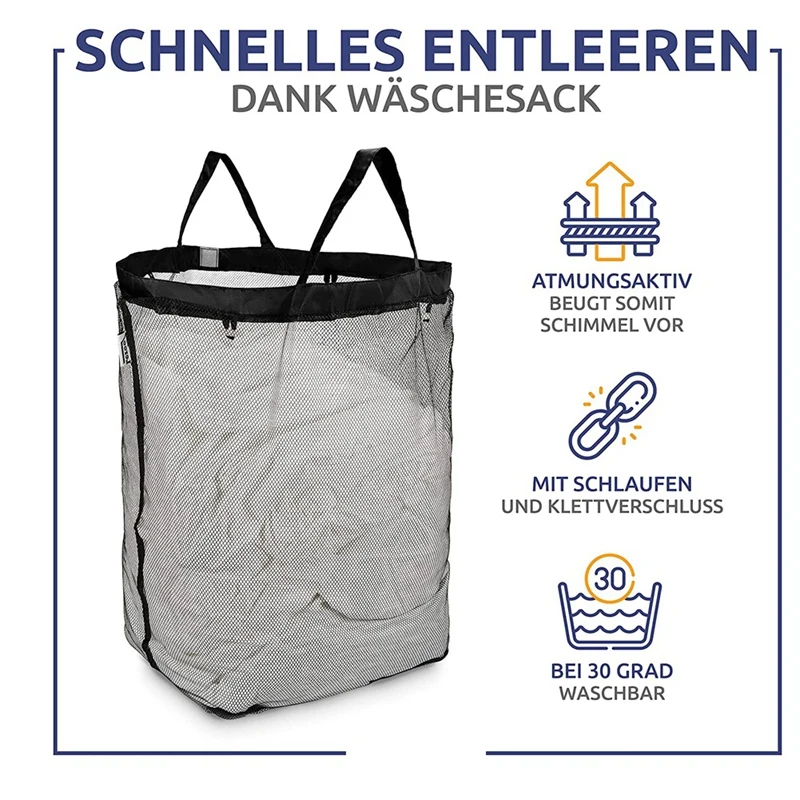 Quick removal thanks to the washing bag: for easy emptying, there is a laundry bag in the laundry basket, which can be removed separately. The dirty laundry container is attached to the inside the laundry baskets via small loops and can be quickly attached and released. A Nylon Sticker fastener on the rim ensures that the bag is held wide open