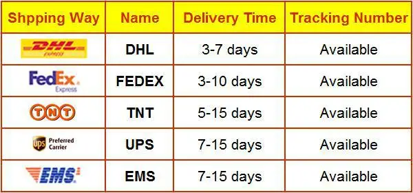 2.Tous les articles seront expédiés via DHL/TNT/Fedex, which normally takes 7-15 jours pour arriver.
