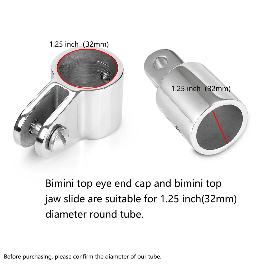1.【How to choose the right size?】: Bimini top eye end cap and bimini top jaw slide are suitable for 3/4 pouce(19 mm) / 7/8 pouce(22 mm)/ 1 pouce(25.4 mm)/ 1-1/4pouce(32 mm)diameter round tube. Avant d'acheter, please confirm the diameter of our tube.
