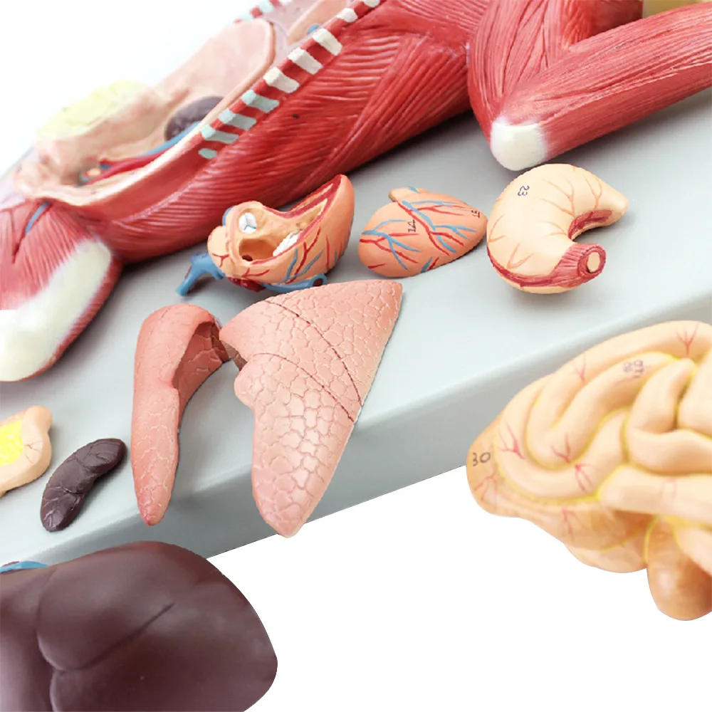 Using adult cat specimens as anatomical references,By restoring the three-dimensional model of the main organs of the cat, such as the heart, lungs, liver, etc., as well as the detailed composition of various parts such as the muscular system, skeletal system and nervous system, users can observe and compare the anatomy of each part up close. Each part model clearly shows the tissue structure of the part in the cat, and briefly describes its physiological functions in the cat through annotations. Through the learning and comparison of various parts, help medical workers and biology learners fully grasp the unique organizational structure and function of each cat system. It adopts the cutting-edge production process of medical teaching to make the anatomy unusually real,On the basis of exquisite craftsmanship, relevant anatomical positions have been marked on the product, which is more convenient for users to use,It is a high-quality tool to help learn cat anatomy knowledge.