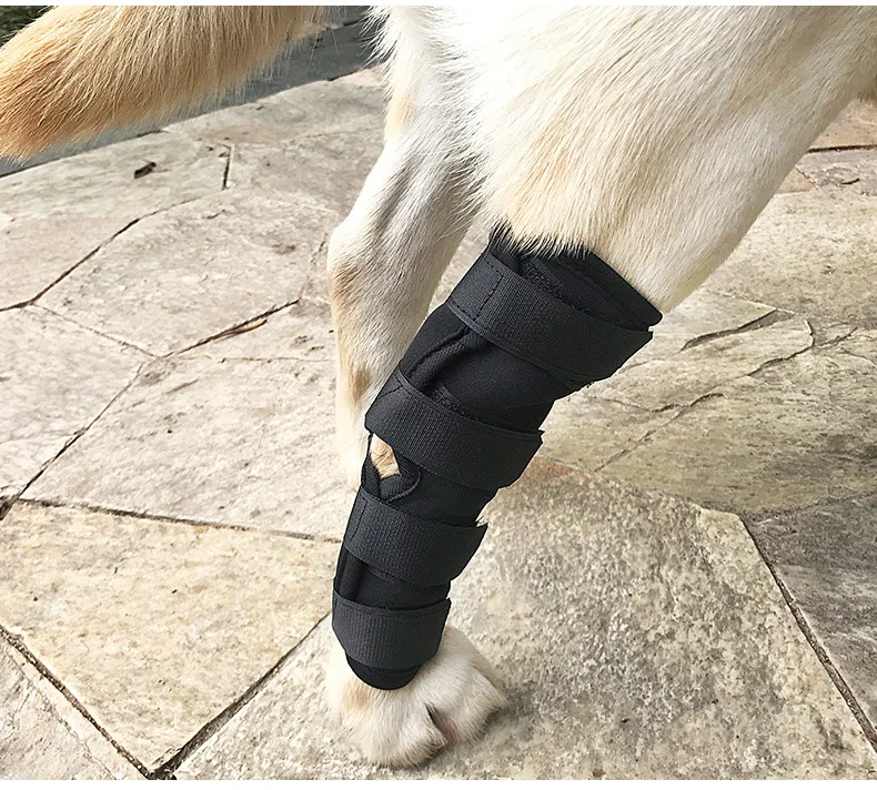 These dog bandages are designed to provide support and protection for pets with leg injuries. They feature anti-lick properties and can help with joint fixation and recovery. The leg warmers are ideal for dogs with golden hair, and the leg brace and foot cuff can help with various types of injuries. Dans l'ensemble, these products are great for helping dogs recover from leg injuries and preventing further damage.