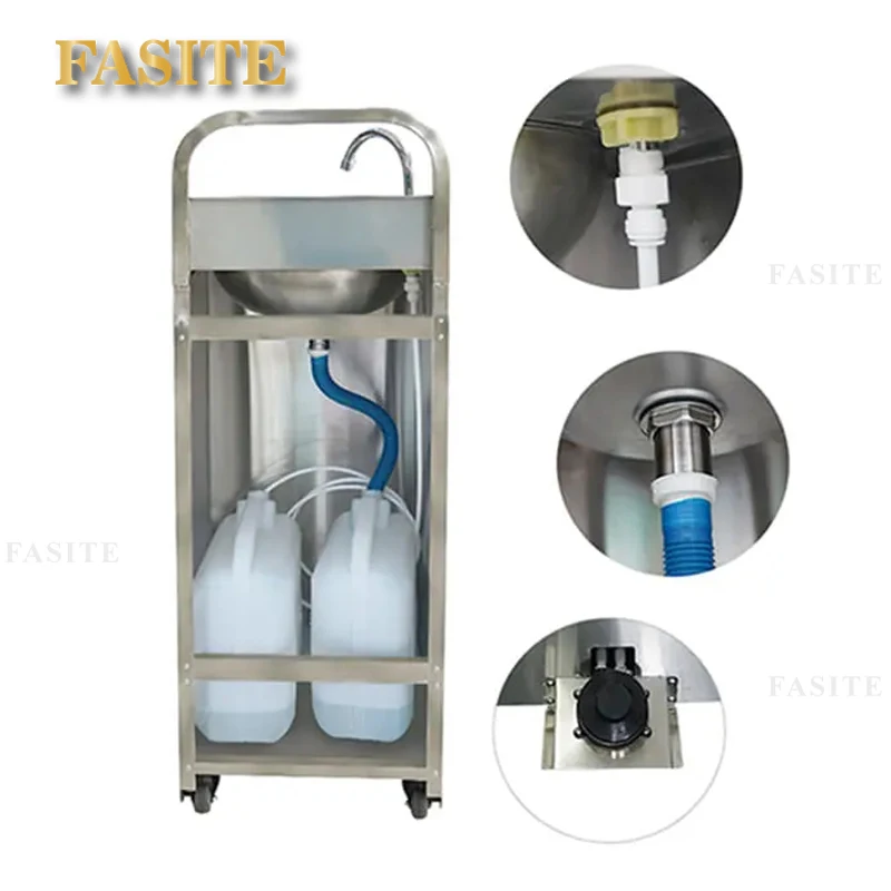 The content describes an outdoor mobile standing stainless steel wash hand station that is a portable wash basin sink with a cabinet and tank. This portable sink is designed for outdoor use and is made of durable stainless steel. It includes a cabinet for storage and a tank for water supply, making it convenient and easy to use in various outdoor settings. The standing design allows for use in any location without the need for installation. The wash hand station provides a hygienic solution for washing hands while on-the-go.