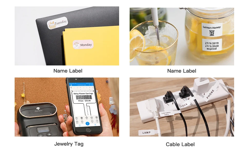 Phomemo self-adhesive Multi-Purpose labels are water resistant, huile, abrasion resistant and strong adhesion.