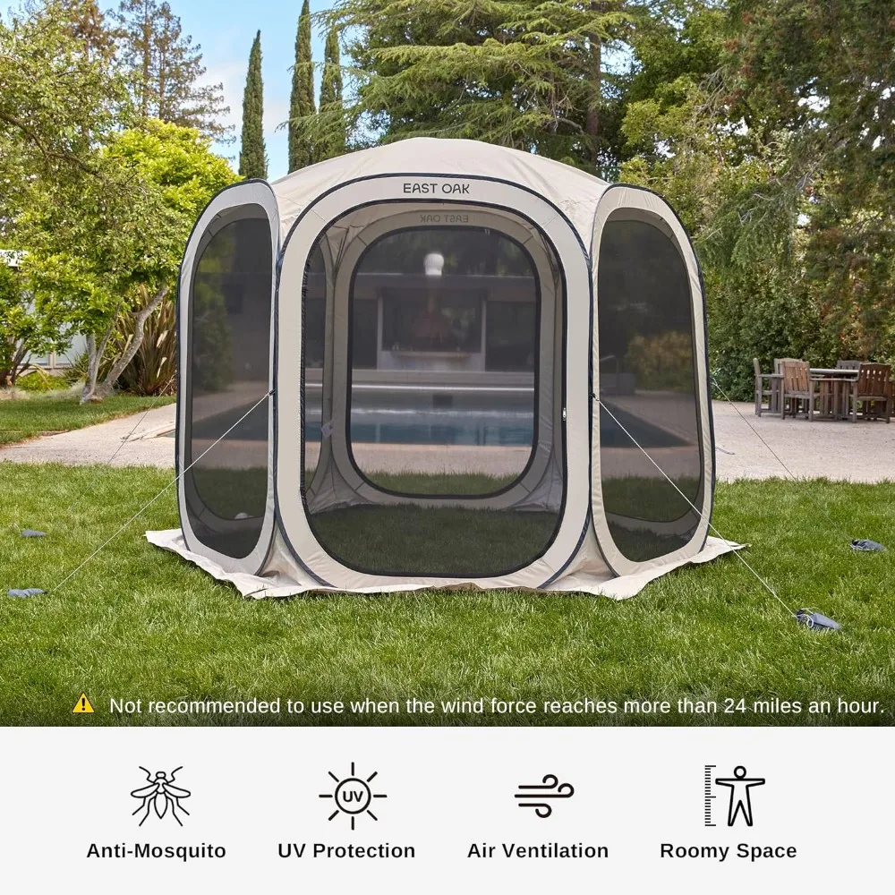 - 𝗦𝘁𝗮𝗯𝗶𝗹𝗶𝘁𝘆 𝗔𝘀𝘀𝘂𝗿𝗮𝗻𝗰𝗲 : Tu ne fais pas’t need to worry about our screen tent’s stability. Its main structure is sturdy steel, which is stronger, more stable and not easy to deform or break comparing to other brands, so it can handle various weather conditions. It also comes with guylines, sandbags and stakes for easy tie down on windy days. NOTE: It is not recommended to use this product when the wind force reaches 24-30.8 mph.