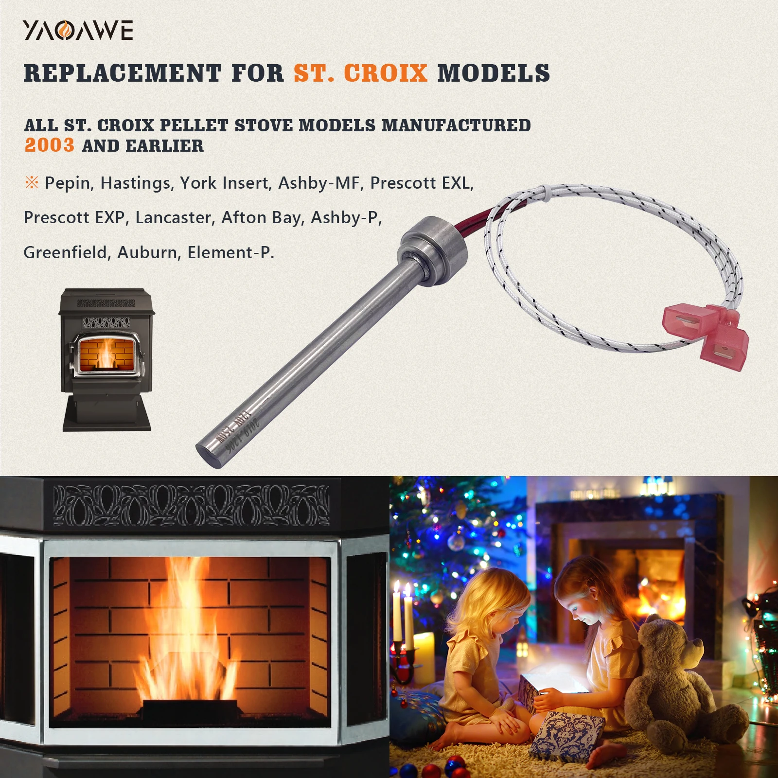 Pellet Stove Hot Rod Replacement for St. Croix part 80P52677-R & 80P52677-R-AMP. Better than the OEM model in your stove.