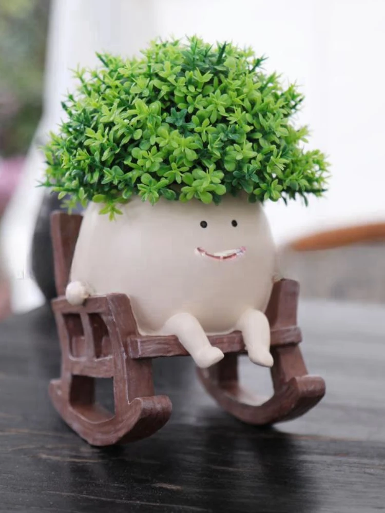 【 Cute Rocking Chair Flower pot 】 This is a smiley head rocking chair flower pot. Rocking chair face planters will make an amazing decoration for your living room, tableau, and bookshelf.