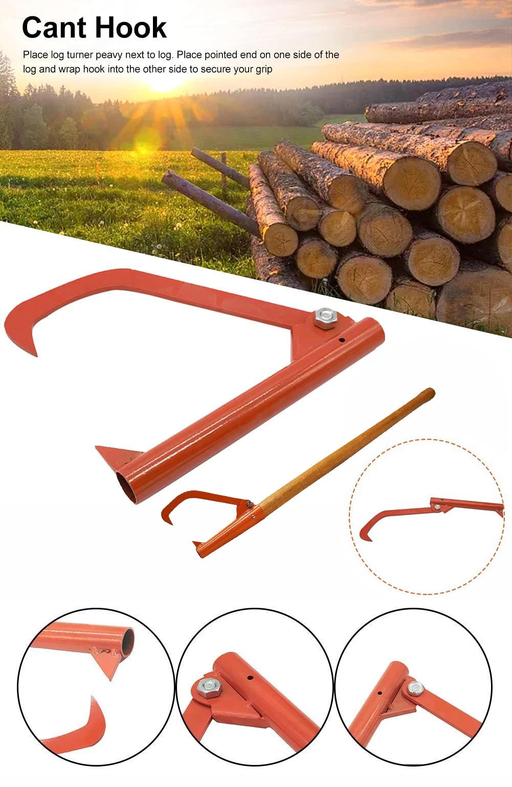 This heavy-duty backyard roller tool is designed for lifting and moving logs. It is made of rustproof steel with a roller felling lever to easily move logs. The cant hook design ensures a strong grip on logs, while the lifter helps with transportation. It is a durable and reliable tool for heavy-duty use without the need for a wooden handle.