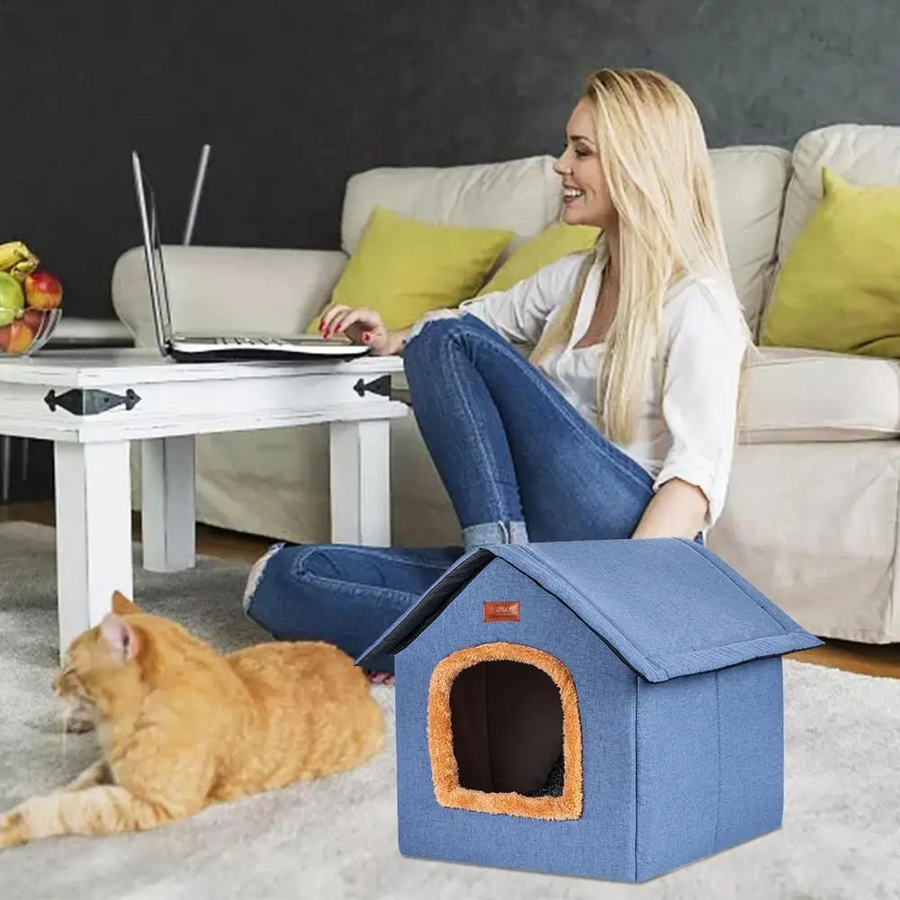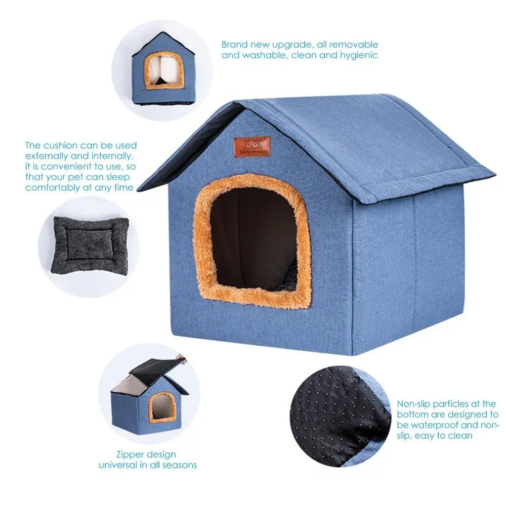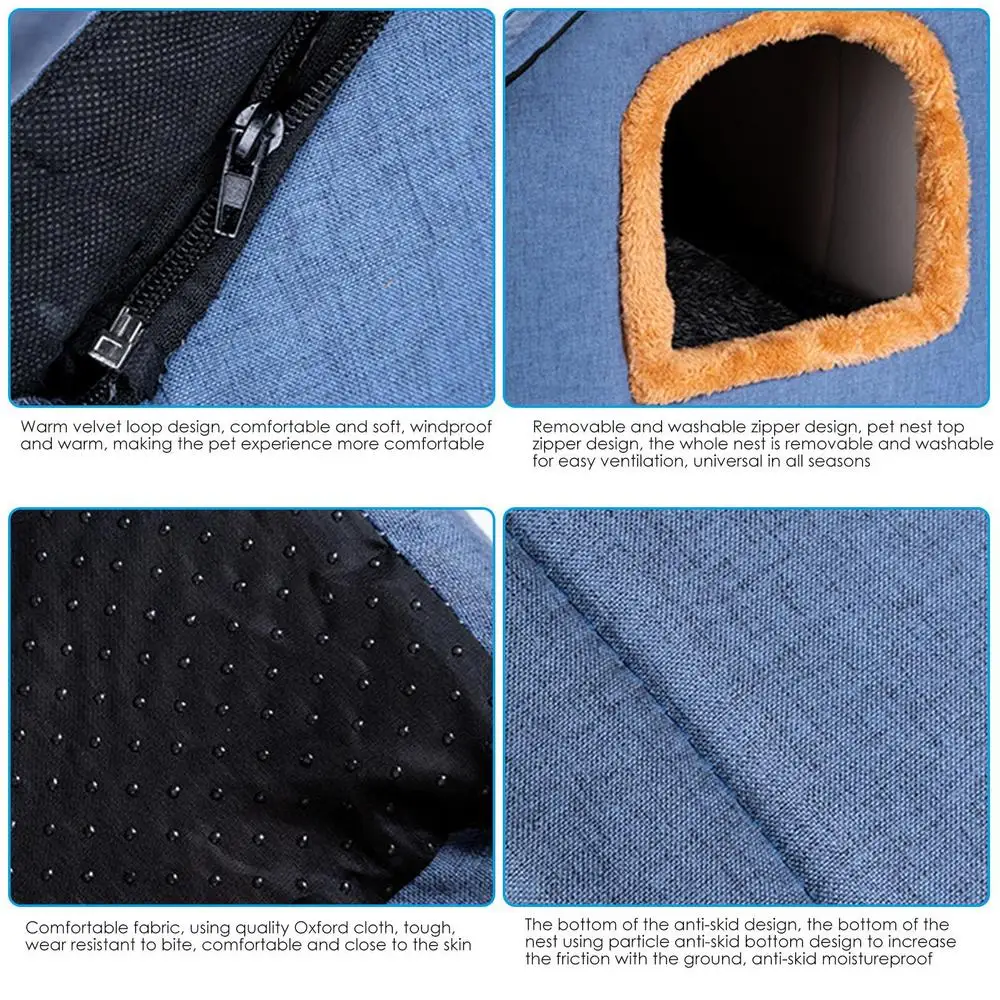 The Oxford cloth Cat House is waterproof, résistant à l'humidité, and breathable. Our pet house is equipped with a soft and removable plush mat for easy cleaning. The semi-enclosed pet nest has a windshield around it, which can be used with a heating pad to protect the pet from the cold weather in winter. (Without heating pad)