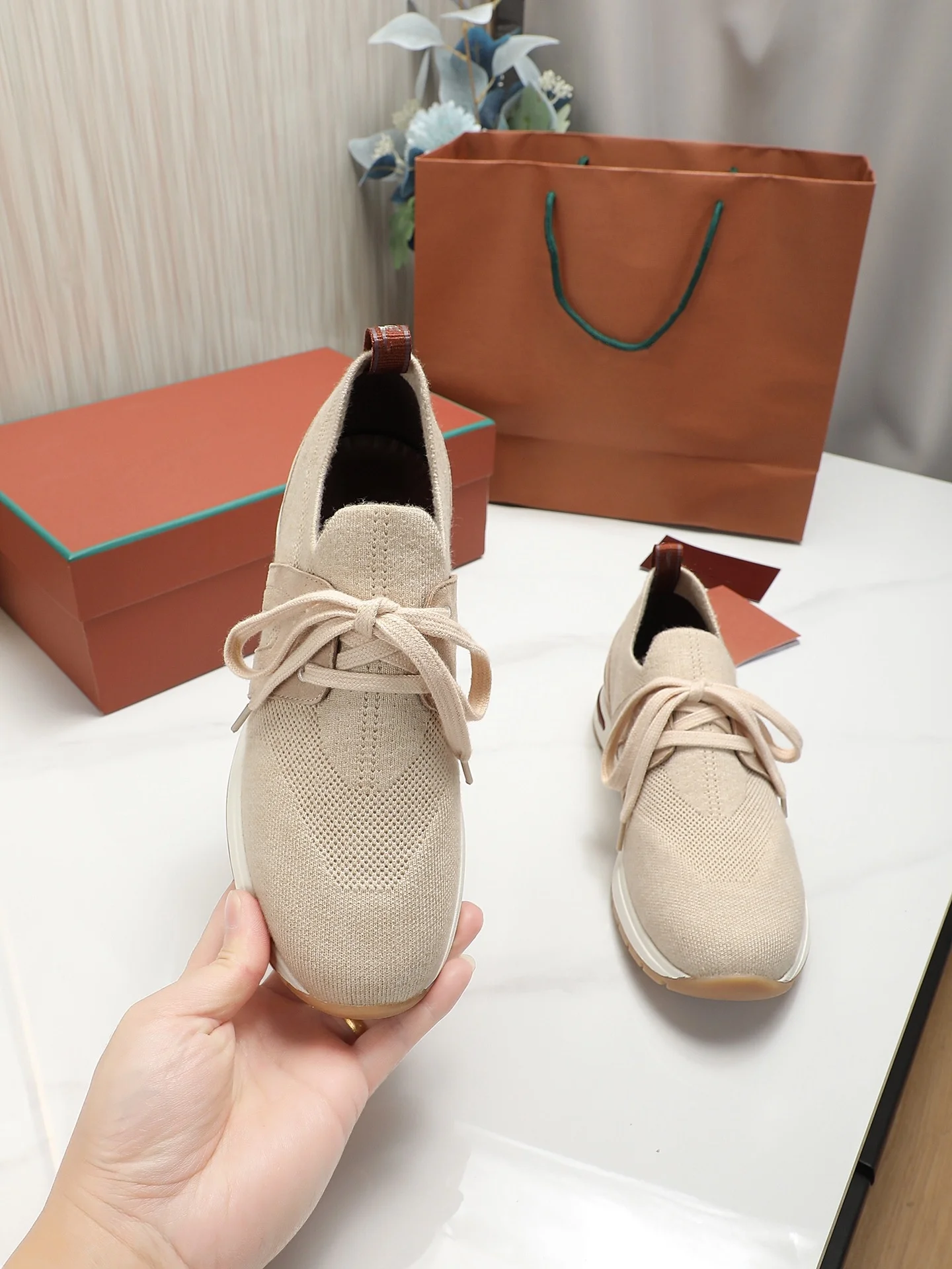 Femmes’s sock shoes are a popular choice for spring, combining the comfort of socks with the stylish look of sneakers. Made from spring cashmere lace up fly knit material, these shoes are both comfortable and fashionable. They offer a snug fit like socks, with the added support of traditional shoes. Perfect for casual outings or running errands, these shoes are versatile and easy to pair with any outfit. Que vous’re walking around town or running errands, these sock shoes are a great option for those looking for a comfortable yet stylish footwear choice.
