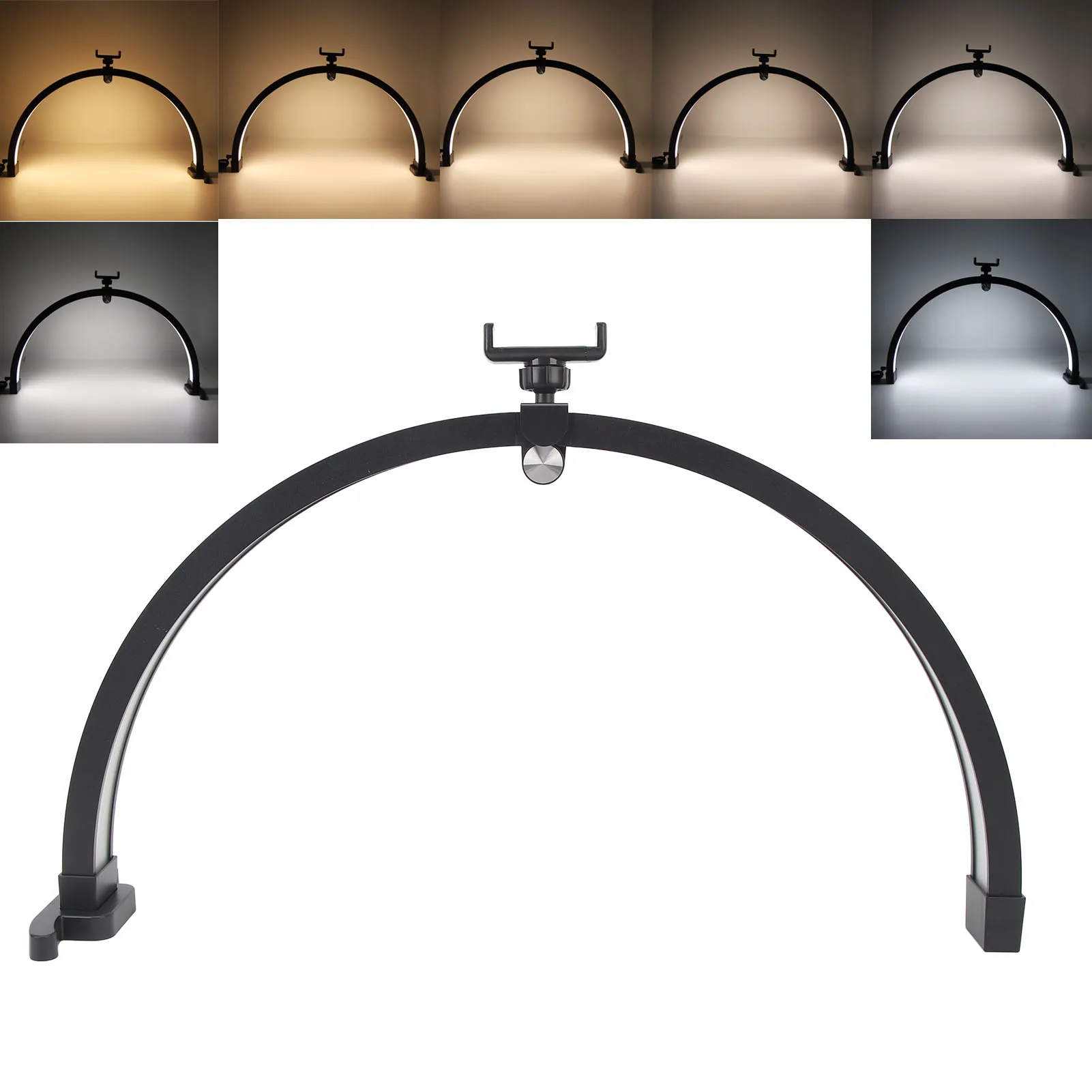 22 Inch Half Moon Nail Desk Lamp Touch Key Half Moon Fill Light Foldable 20W Nail Lamp Desktop Table Lamp with Phone Clip