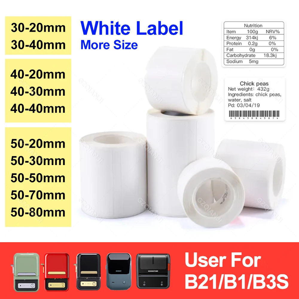 The Niimbot B21, B1, and B3S printers are compatible with label paper rolls that are 30-50mm in size. These white sticker print papers are tear-proof, impermeabile, and oil-proof, rendendoli durevoli e di lunga durata. The adhesive on these rolls ensures that the labels stay securely in place once applied. Ideal for various labeling applications, these paper rolls are a reliable and high-quality option for printing a wide range of labels.