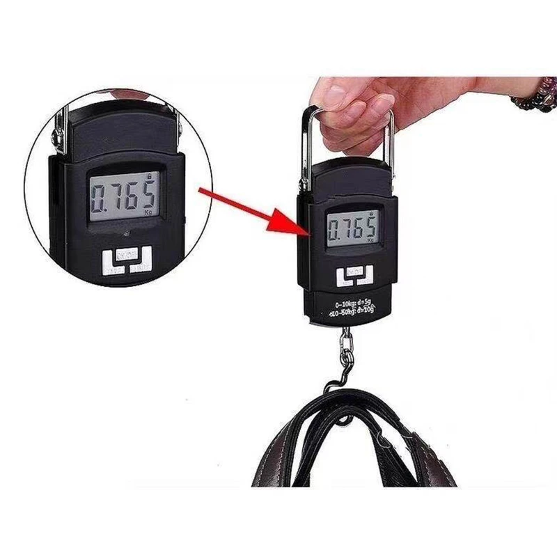 • Package Included: 50kg/10g Portable Electronic Hanging Weighing Scale WH-A08, 2pz. Batteria AAA, Manuale.