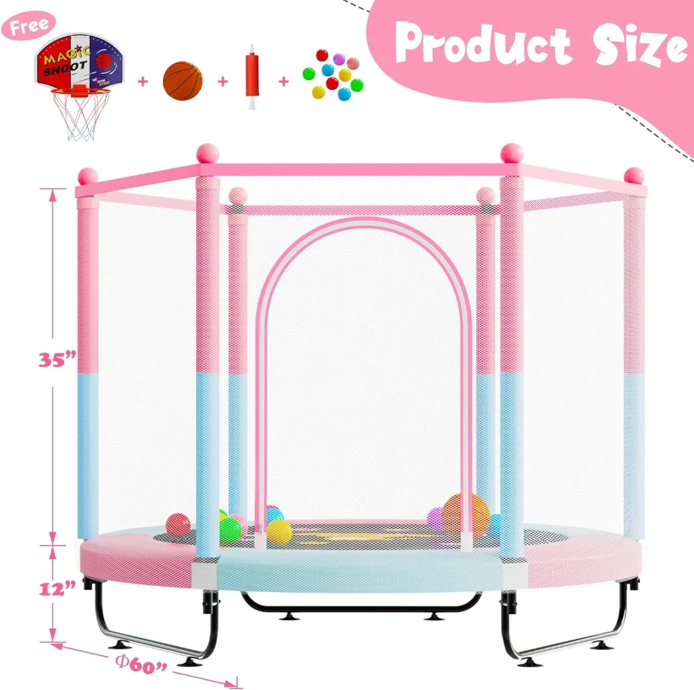 - HEAVY LOADING – This 60″ trampoline with safety enclosure for kids toddlers is safe and stable. The kids trampoline with protective net ensures your child’s safety when jumping. Don’t worry about getting hands or feet trapped in the gap, because they are covered by durable frame pads. (All VGMiu trampolines are fully tested for safety and durability)