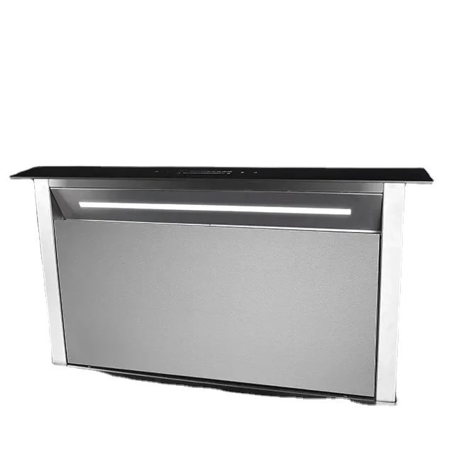 The 60cm 90cm Super Quiet Downdraft Kitchen Cooker Hood is a kitchen appliance that efficiently removes smoke, odori, and grease from the air while operating quietly. It has a sleek design and is available in two different sizes to fit different kitchen configurations. This downdraft cooker hood effectively sucks up fumes and cooking smells, keeping the kitchen fresh and clean. The quiet operation ensures a peaceful cooking environment without loud noise disruptions. Complessivamente, this appliance is a stylish and functional addition to any kitchen for improving air quality during cooking.