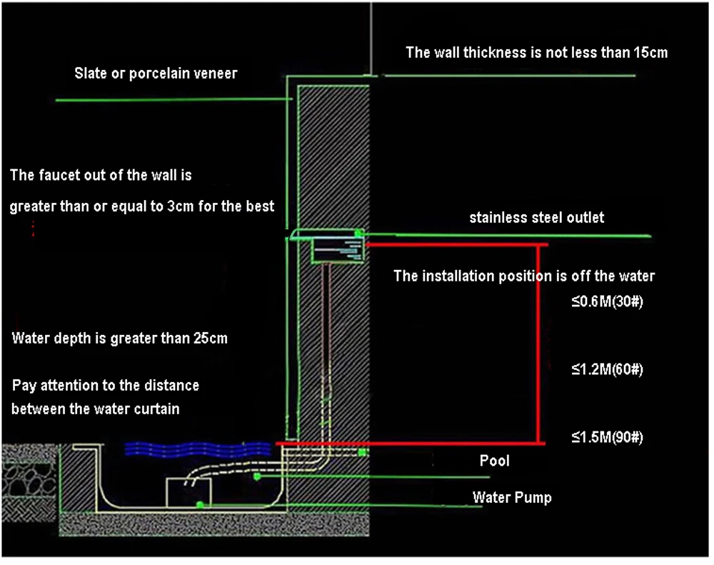 3. Dopo l'installazione, connect the water pump and conduct a water test to achieve your ideal effect, and then apply tile or stone decoration on the surface.