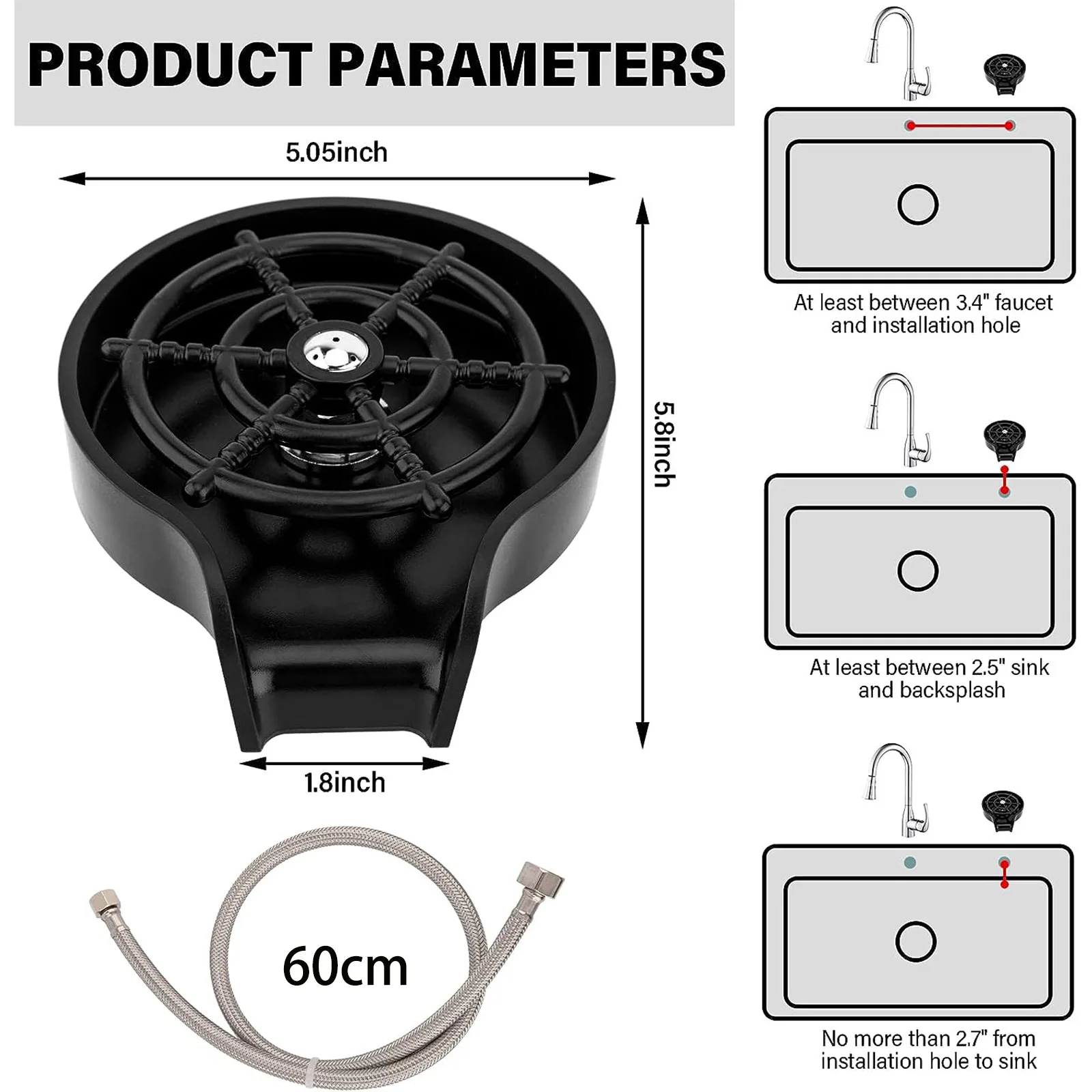 La nostra rondella di tazza è il complemento perfetto per gli accessori per la lavandino della cucina e viene fornita anche con tutti gli accessori hardware di cui hai bisogno, come raccordi per magliette e tubi dell'acqua per separare il rubinetto caldo/freddo e connettersi all'approvvigionamento idrico.
