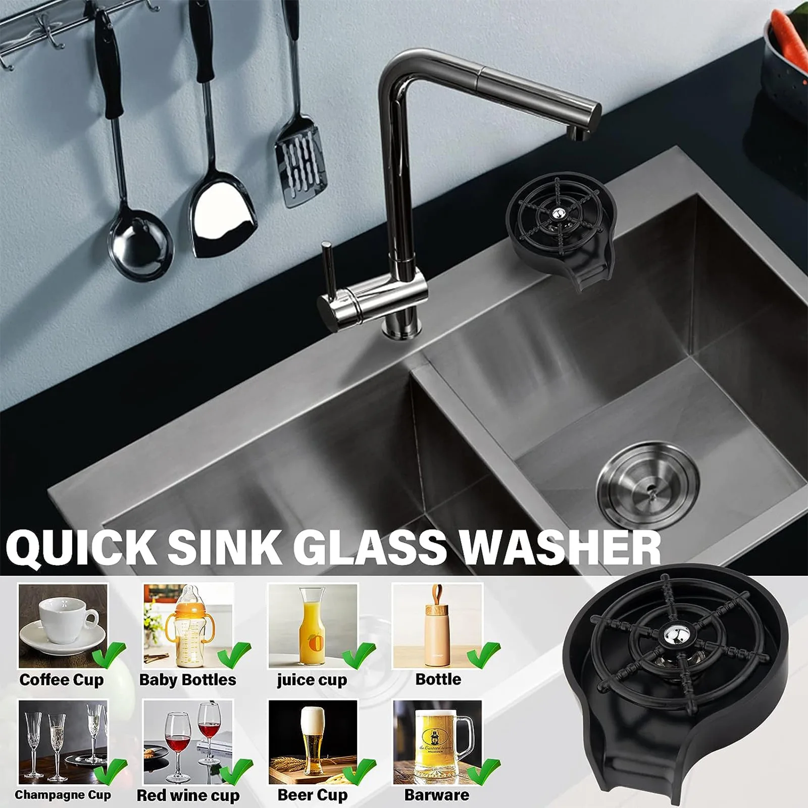 With its sleek design and easy-to-use features, this Glass Cup Washer is a must-have for any kitchen. Simply attach it to your kitchen sink faucet and watch as it effortlessly removes stains and residue from your glasses, leaving them sparkling clean and ready for use.