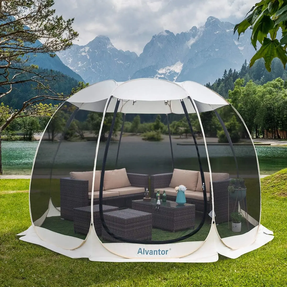 Alvantor Screen House Room Camping Tent Outdoor CanopyUp Sun Shade Hexagon Shelter Mesh Walls Not Waterproof 10 'X 10’ Brevetto beige in sospeso”