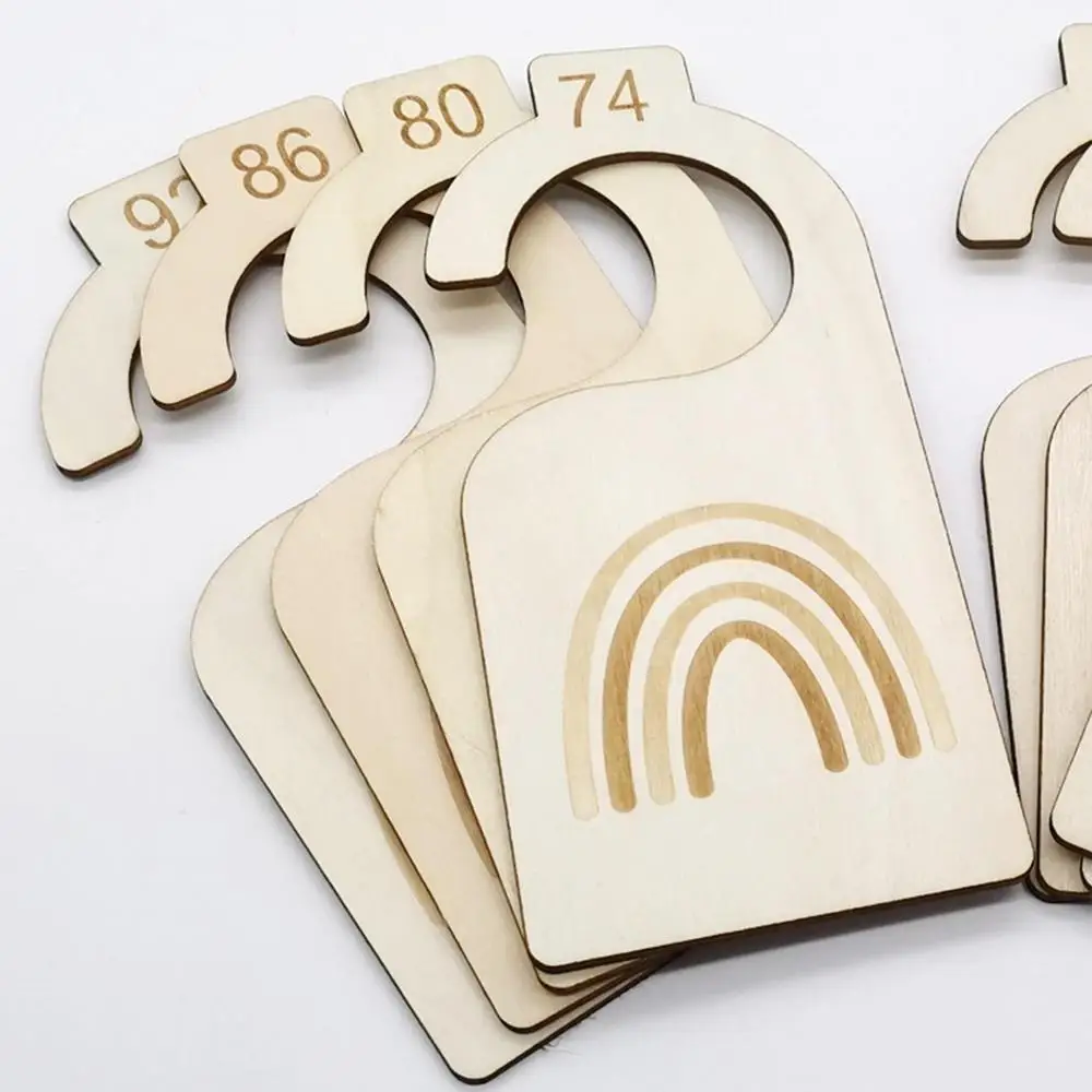 3、Design carino: Perfect for girls and boys, the classic wooden material complements the cute rainbow pattern design, you can write the size or washing method of the clothes.
