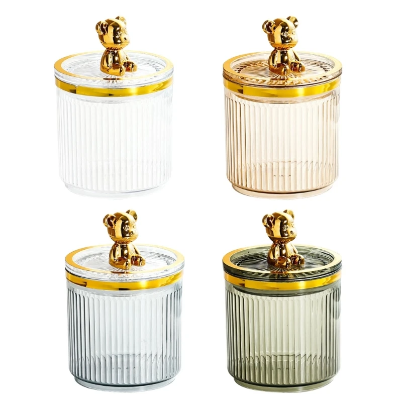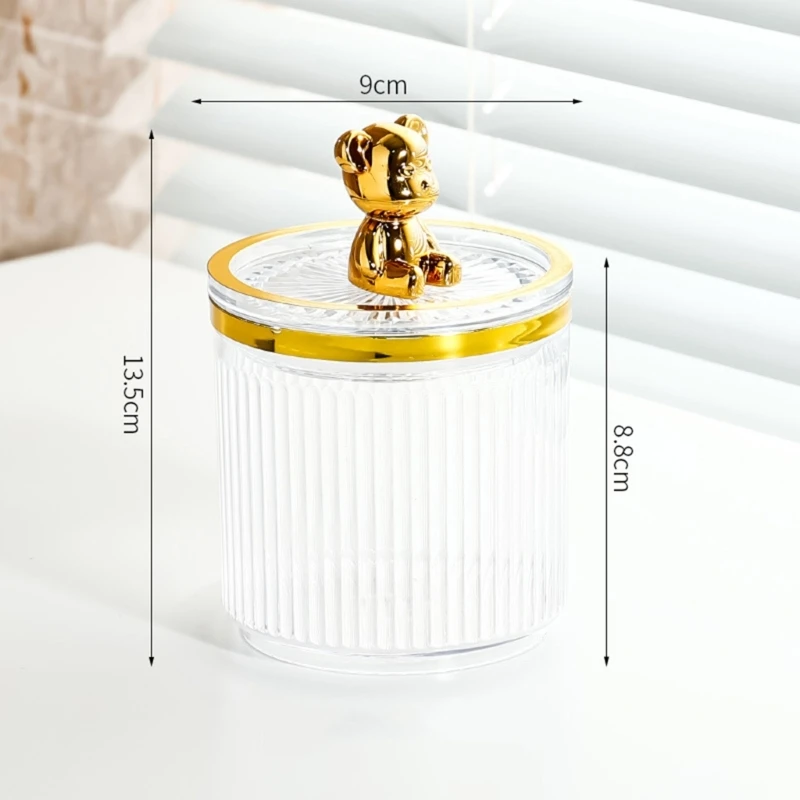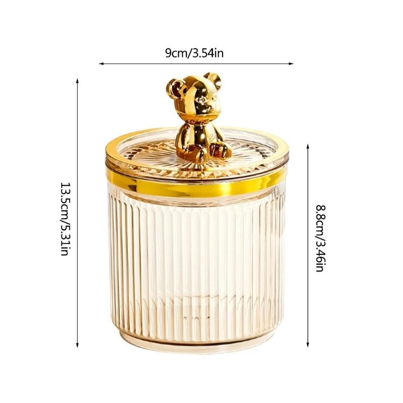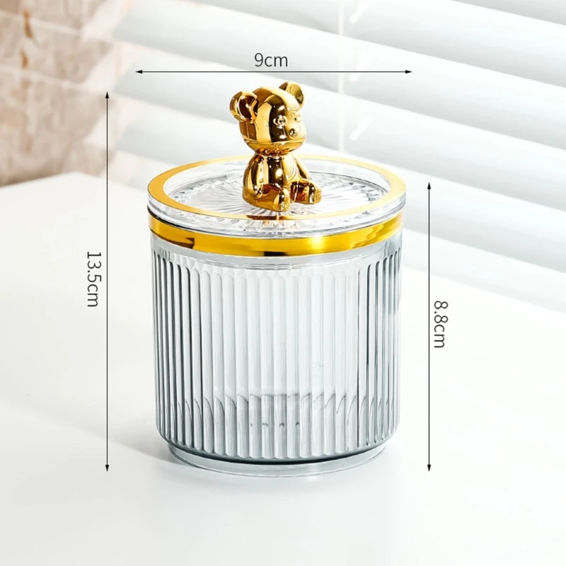 Cotton swab storage box, vertical pattern striped design, luxury and fashionable, exquisite bear decoration on the bottle lid, very beautiful and luxurious.