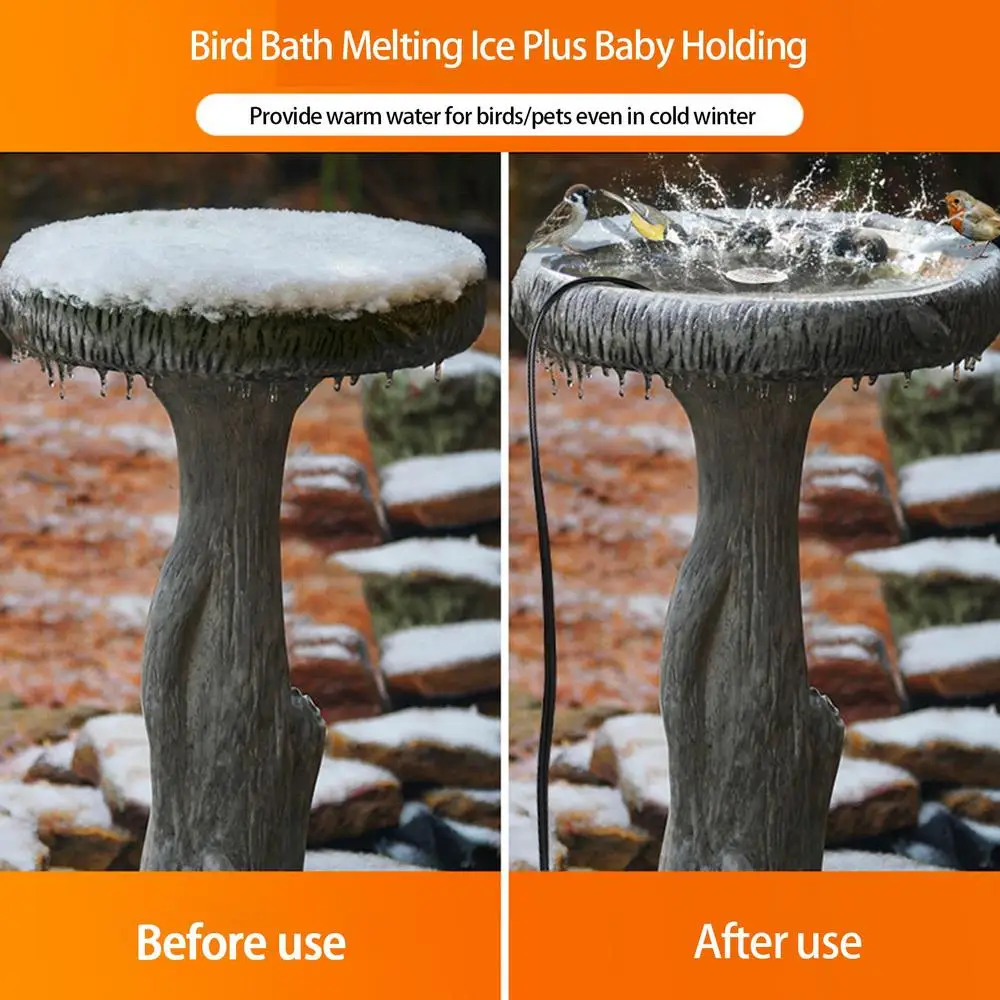 3.Keep Curious Birds Safe: Because our Bird Bath Heater has a high-quality built-in heating wire, it is safe to use. It can keep curious birds safe.
