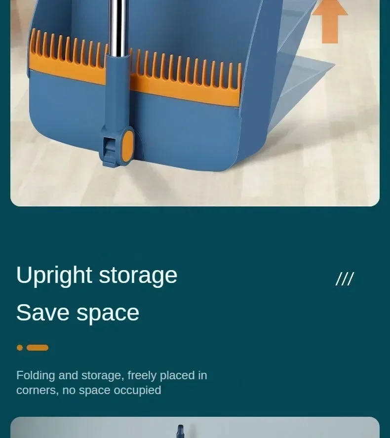 The Broom Dustpan Set is a combination household cleaning tool that includes a magic folding non-stick hair sweeping tool. It is designed to efficiently sweep and clean up dust and hair from floors without leaving any residue behind. The set includes a broom, Paletta, e spazzolare, making it easy to clean all types of surfaces in your home. The magic folding feature allows for easy storage and transportation. The set is durable, alta qualità, and a convenient tool for keeping your home clean and tidy.