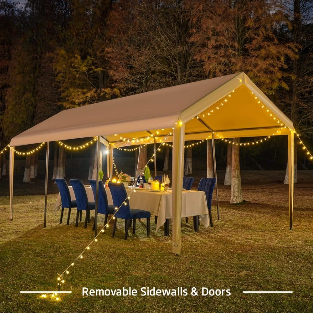 - Larger Carport: 10'x20′ size provides ample space for your vehicles, camion, e barche. Removable sidewalls and doors to meet your various needs. It is also suitable for outdoor events like parties, matrimoni, and commercial fairs.