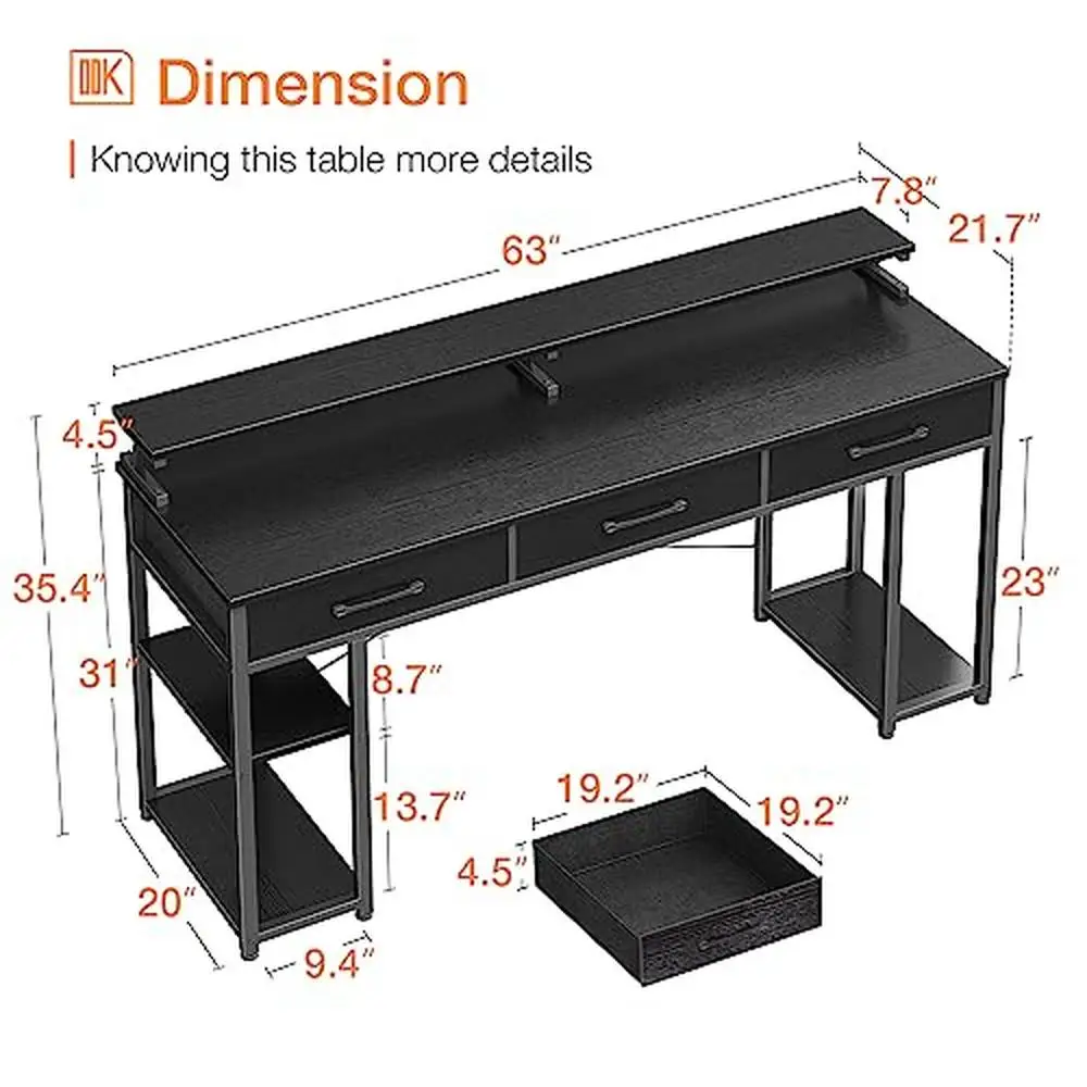 The perfect desktop size(63 inch*22 inch) fits your 2 big monitors and your laptop, libri. Ample room for all of your office or work-from-home needs! The detachable underneath storage shelves of the desk can be placed in any size so it works perfect for any usage. (Eg: CPU stand, libri). There are also a lot more legroom and space for you. Suitable for a full-sized person.