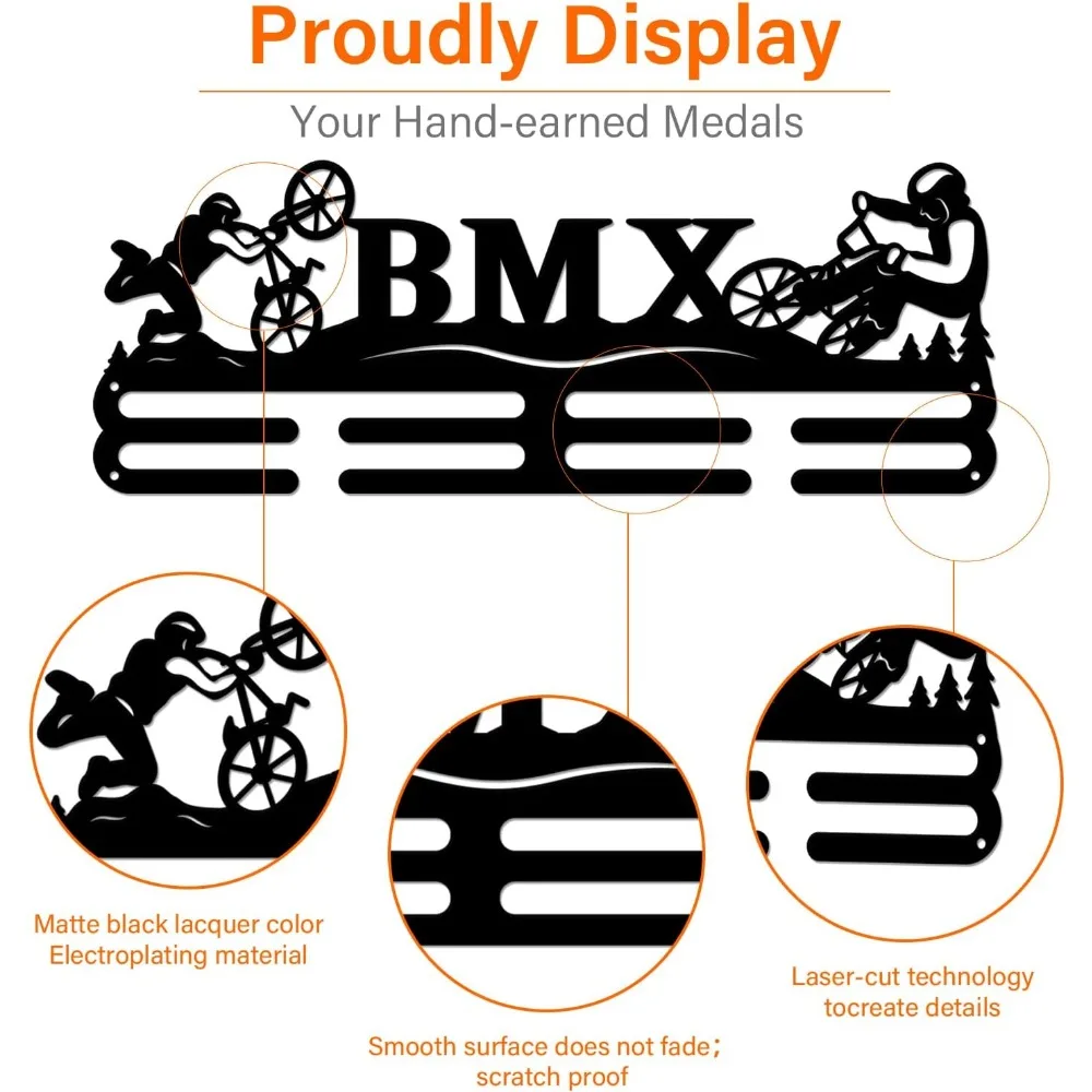 Gancio di medaglia BMX: Questo gancio di medaglie è progettato in "BMX " tema e decorato con la scena sportiva. Ottimo regalo per gli sportivi, amici o familiari, Per compleanni e occasioni importanti.