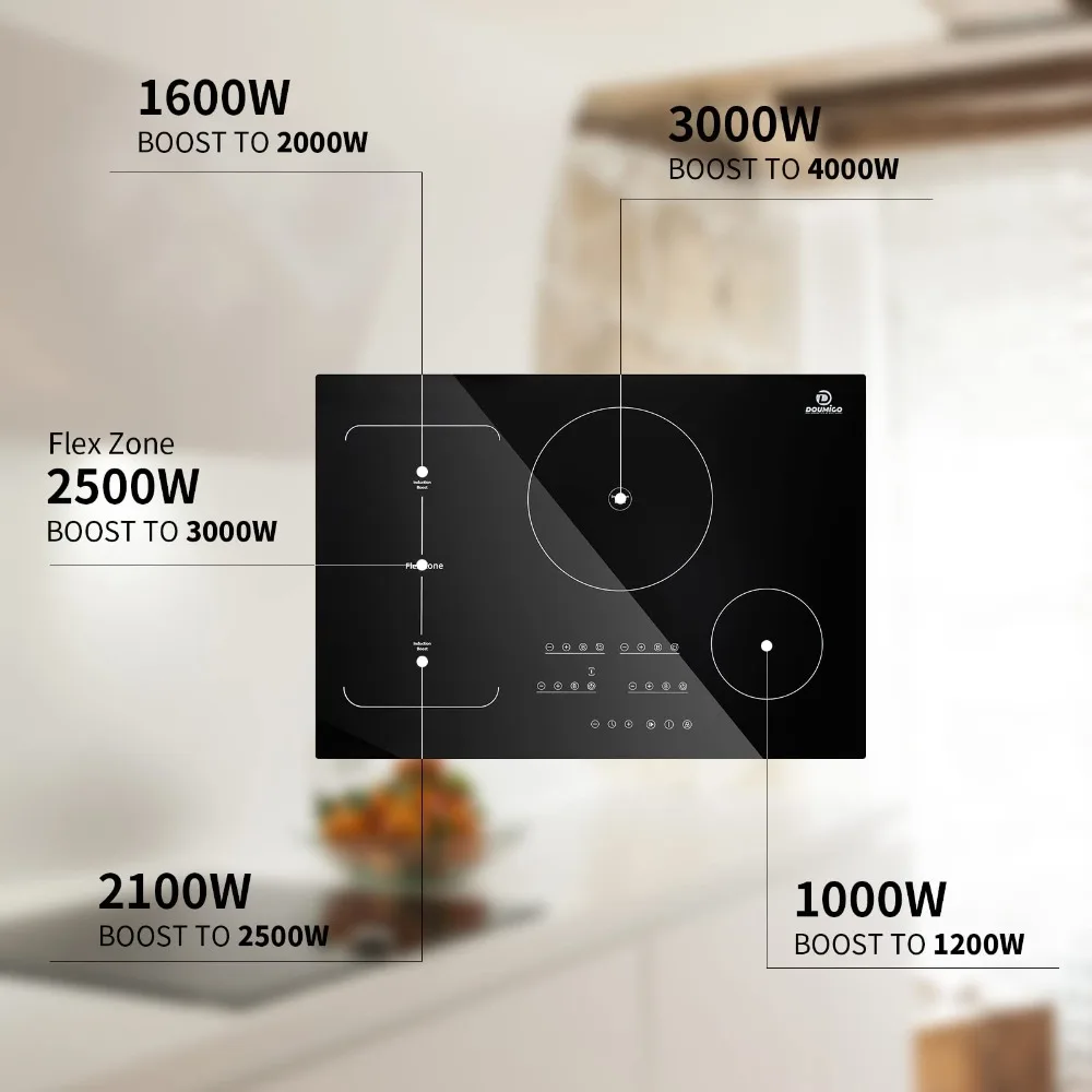The Doumigo Induction Cooktop is a 30-inch electric cooktop with 4 burners and a boost function. It includes a Flexi Bridge element that allows for flexible cooking options. The cooktop has a maximum power of 4000W, making it suitable for quick and efficient cooking. With its induction technology, the cooktop heats up faster and more evenly than traditional cooktops. It is a versatile and high-powered option for those looking for a reliable and efficient cooking appliance.