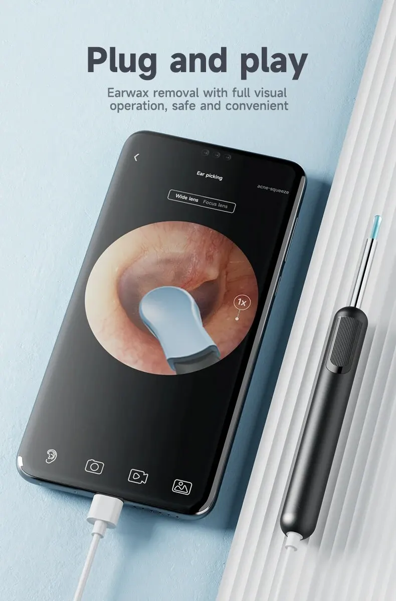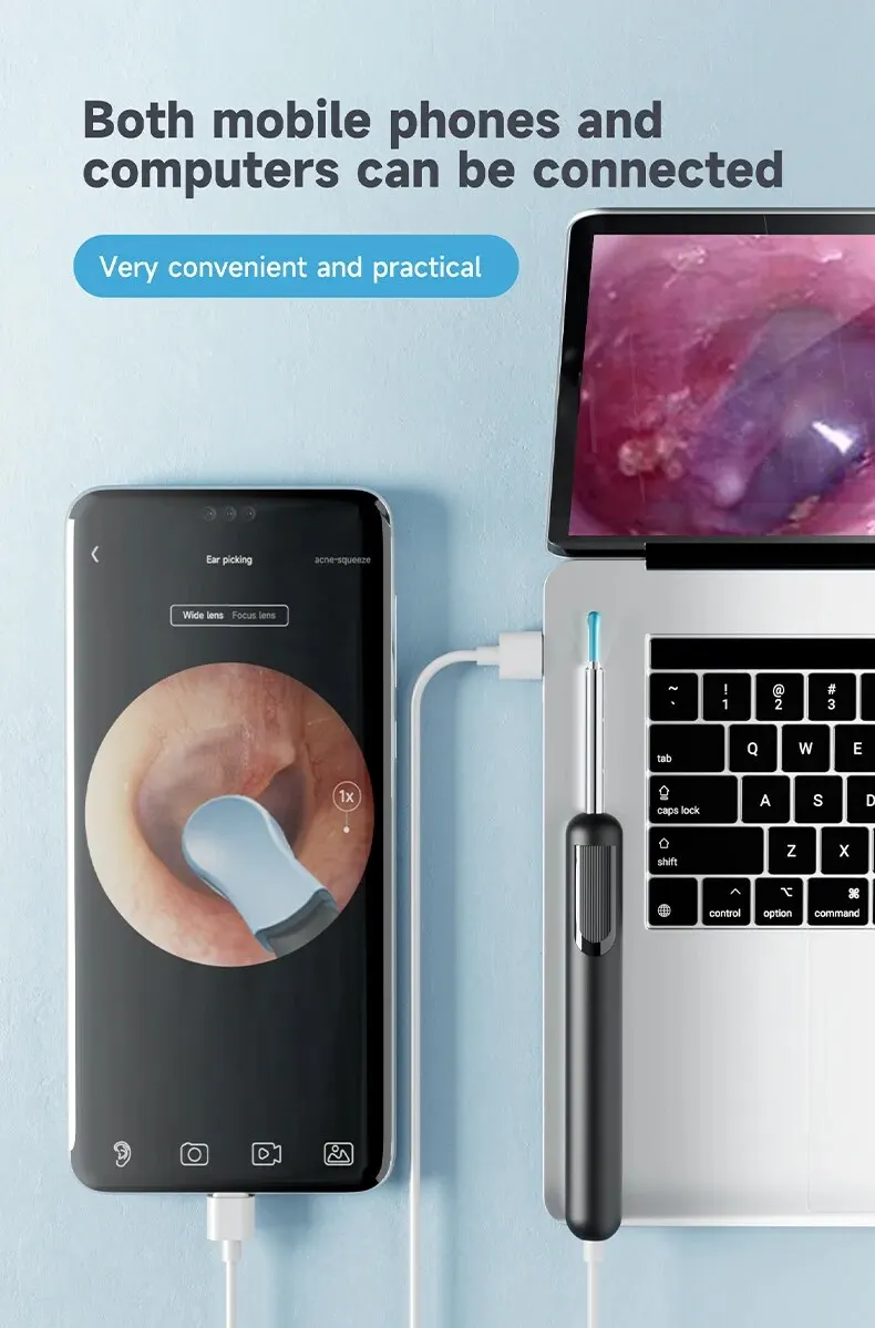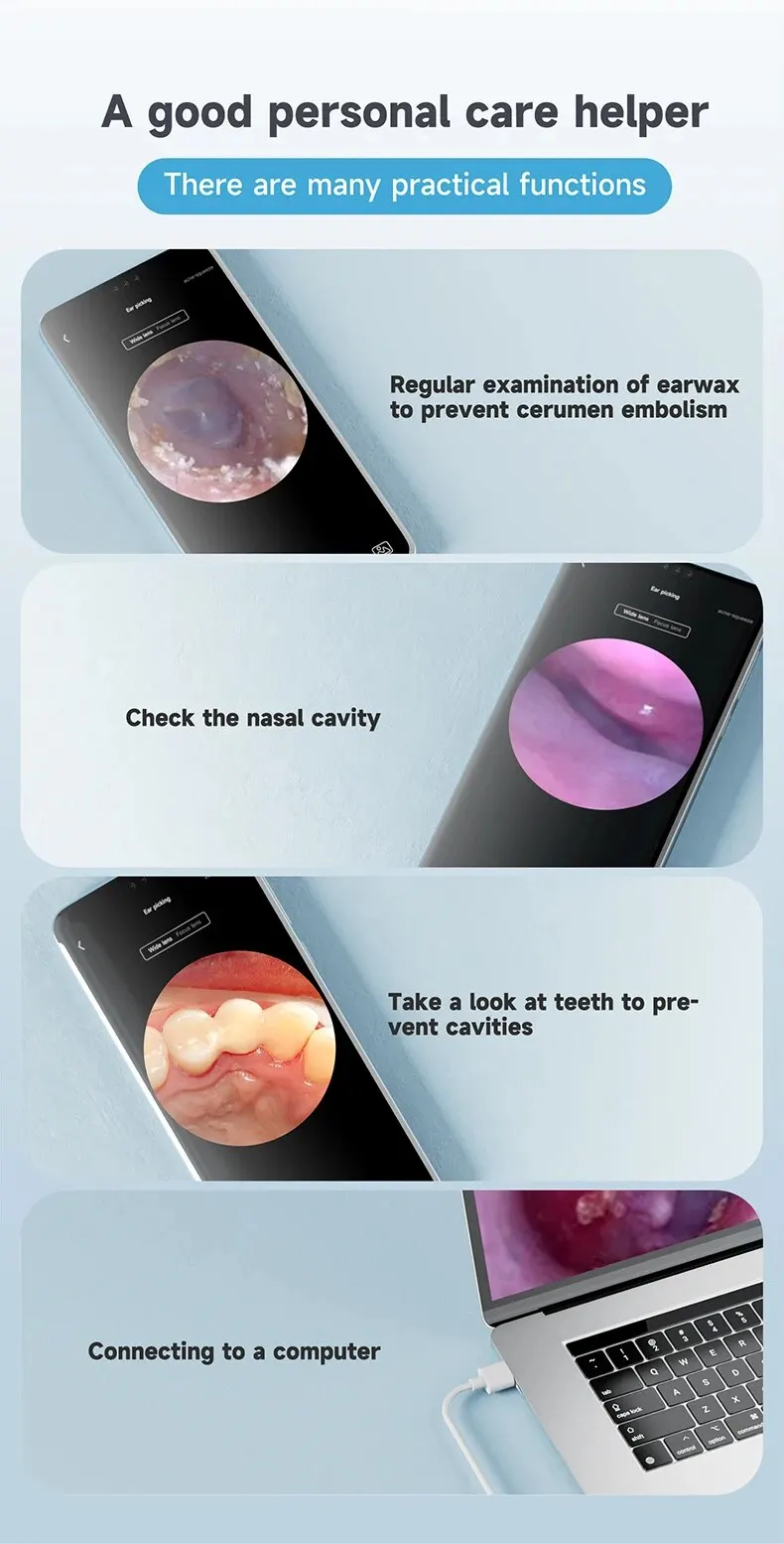5. PICTURE & VIDEO – Ear wax removal tool can also be used to take photos and record videos. You can send photos and videos to the doctor, which is very easy to use.