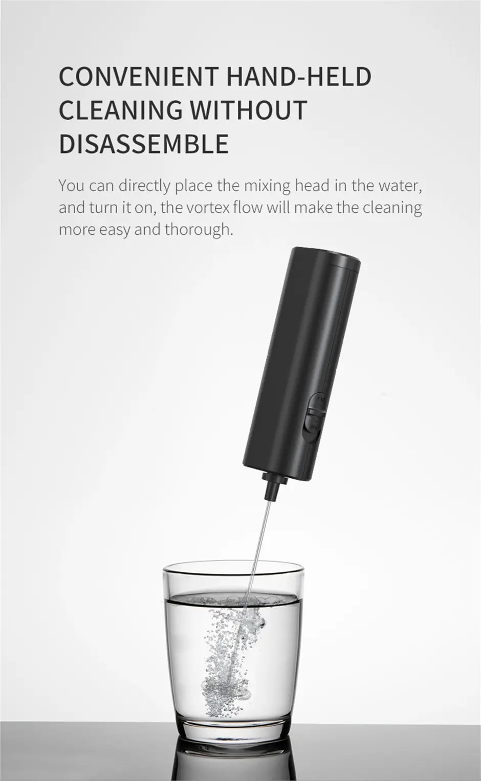 4. EASY TO STORE AND CLEAN – Cleanup is easy and fast! Simply put the stainless-steel whisk under warm water and briefly turn it on. It will clean instantly!