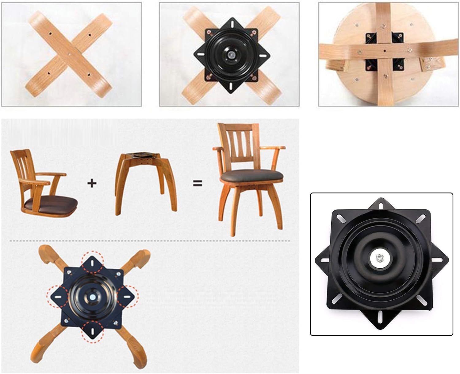 Realizzato con materiali di alta qualità, this durable swivel plate is designed to last. Say goodbye to uncomfortable seating positions – this swivel base allows for a full 360-degree rotation, making it easy to turn and socialize with friends and family.