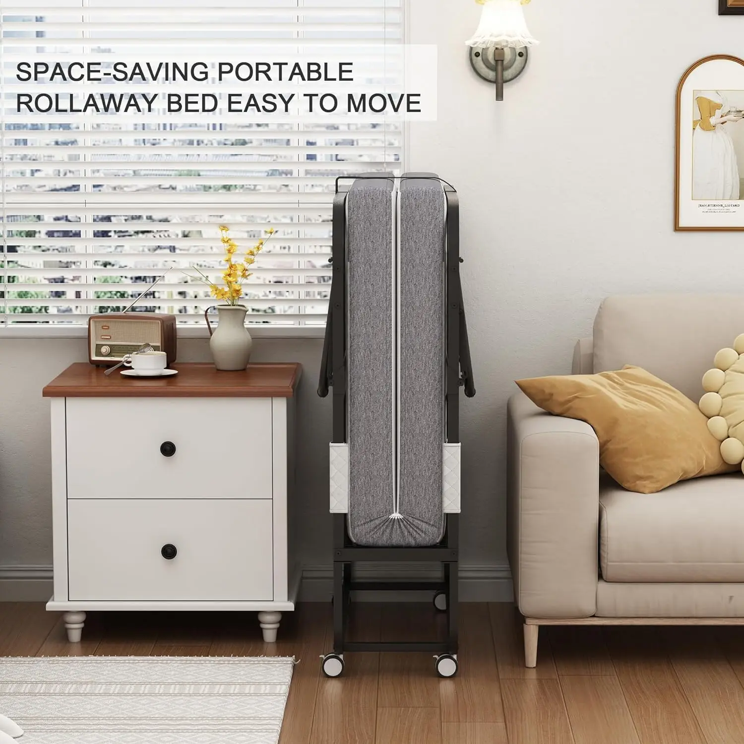 - 【Spazio risparmio】 Questo letto a rallina ha uno spessore pieghevole di un solo 14 pollici, rendendolo perfetto per piccoli spazi; Dopo aver piegato, Puoi conservare il letto pieghevole in un armadio o contro un muro. Con l'aiuto di ruote universali rotolanti, Una persona può facilmente spingerlo; Questo letto pieghevole è perfetto come un letto per gli ospiti in più quando la tua famiglia o amici visitano.