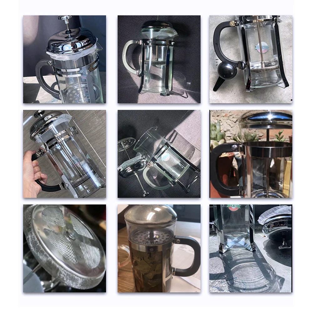 Carafe in vetro resistente al calore: La caraffa nella nostra pressa per caffè e tè è realizzata in vetro borosilicato. È un bicchiere di alta qualità in grado di resistere all'acqua bollente senza deformare o cracking. Funziona perfettamente come caffettiera, Pressa di caffè sul ghiaccio, o pressa da tè per il tè sciolto
