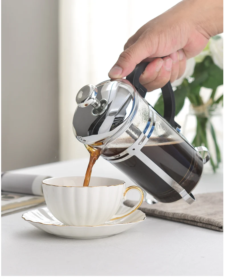4.La caffettiera della stampa francese ti consente di preparare il caffè di sapore puro e forte.