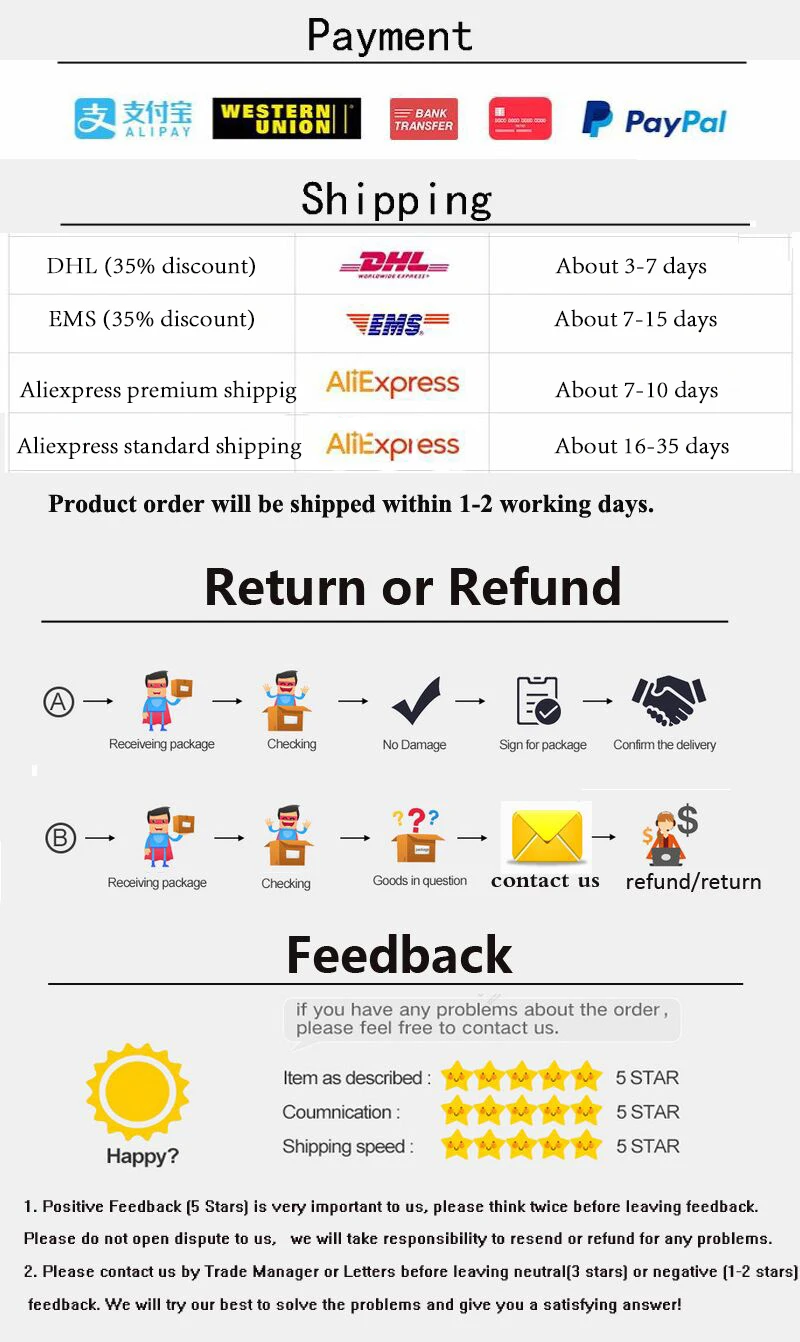 5.Se non hai ricevuto la spedizione all'interno 30 giorni dal pagamento, Ci contatti per favore. Seguiremo la spedizione e ti ricontatteremo al più presto con una risposta. Il nostro obiettivo è la soddisfazione del cliente!