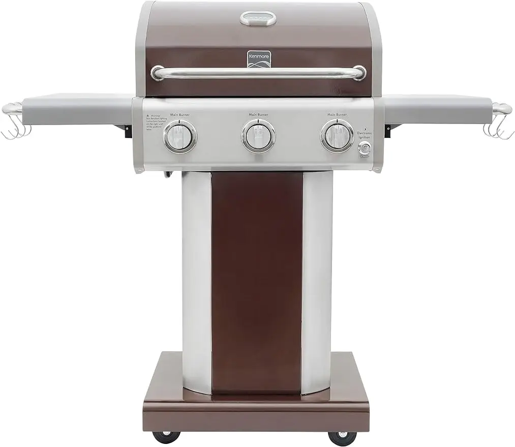 Kenmore 3-Burner Outdoor BBQ Grill | Liquid Propane Barbecue Gas Grill with Folding Sides, PG-A4030400LD-MO, Pedestal Grill with Wheels, 30000 BTU, Moka