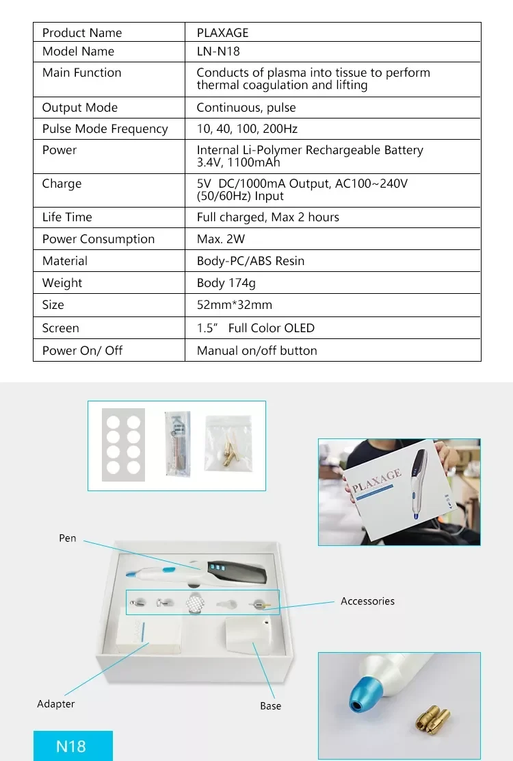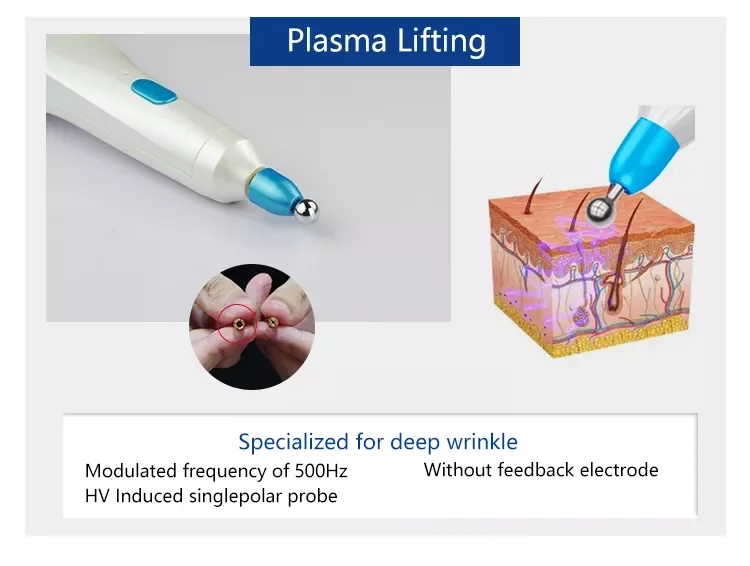 Similar as carbon dioxide (CO2) laser beauty machine, it is use new generation of plasma micro district discharge technology with low temperature and high frequency, it is efficient capacity conversion material and chip control. when the needle touch the freckle skin, it produce plasma with high temperature as 2000 ℃ immediately, then it can carbide the spot freckle, removal it.