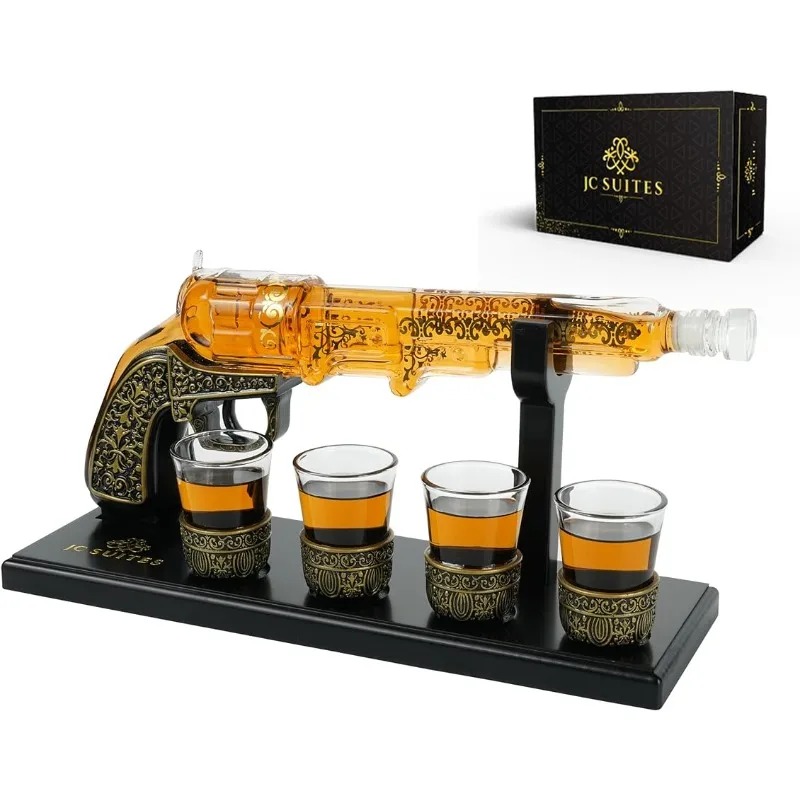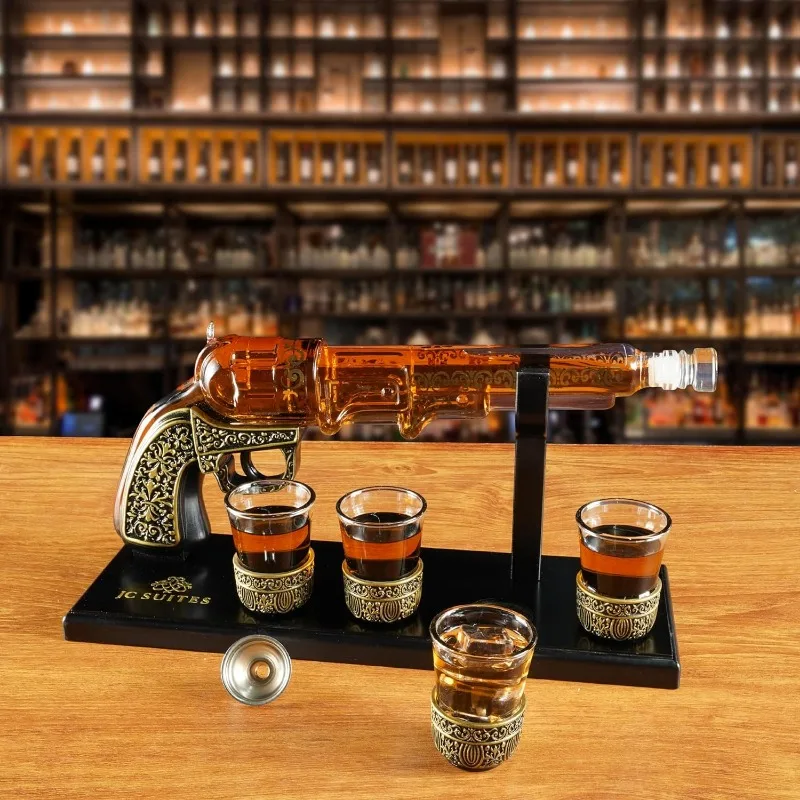 - [Rally the Troops & Spark Conversations] – Add this to your arsenal to immediately elevate your home bar! Shoot your shot with our glass gun decanter sets & we promise you won’t miss. A true conversation starter, attention-grabber, & eye-catcher!