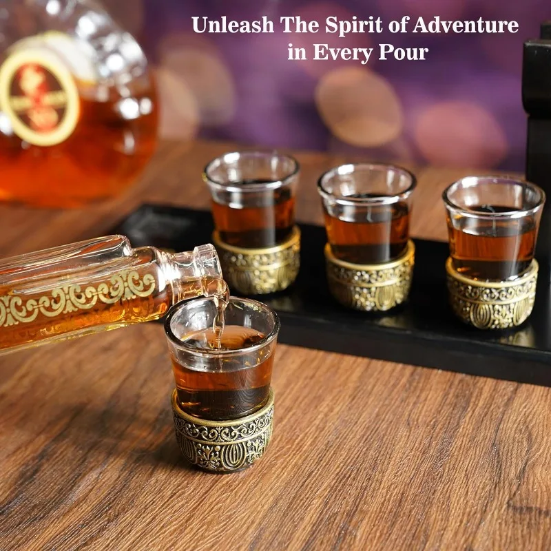 - [Salute to you, Soldier] – Celebrate your victories using our liquor decanter set with 4 Bicchieri da shot, a stand & included funnel to smoothly pour your liquor of choice – bourbon, scotch, tequila, whisky, vino, lo chiami tu!