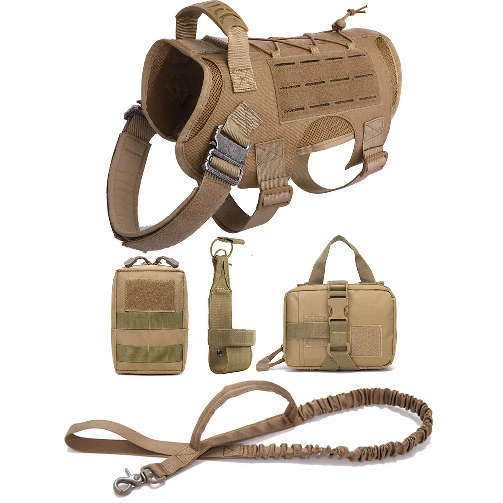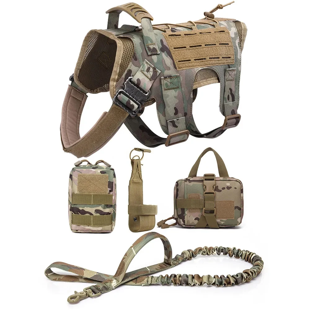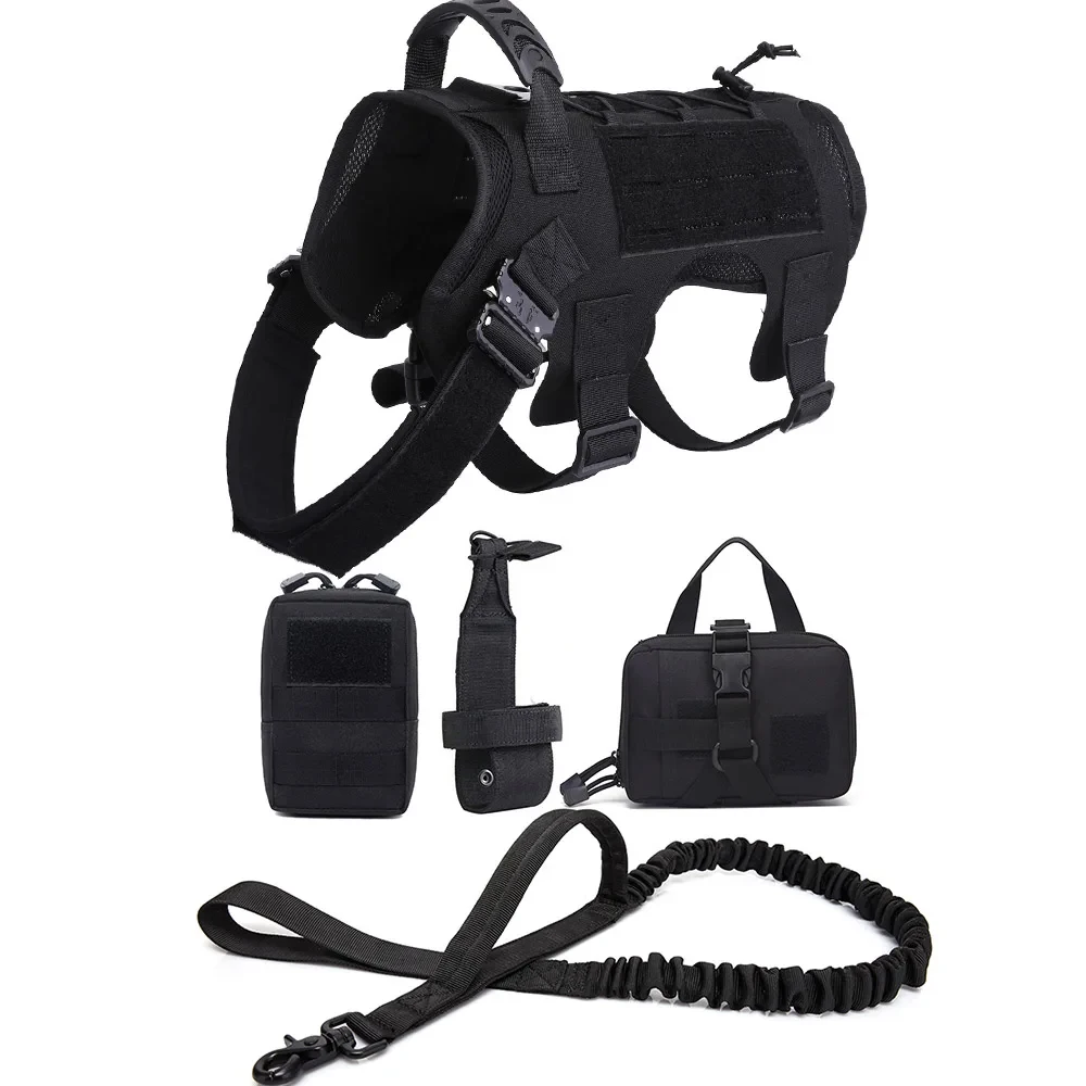 Tactical Dog Harness Pet Training Vest With Bags Military Dog Harness Leash Set Service Dog Vest Safety Lead Walking