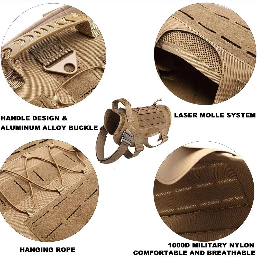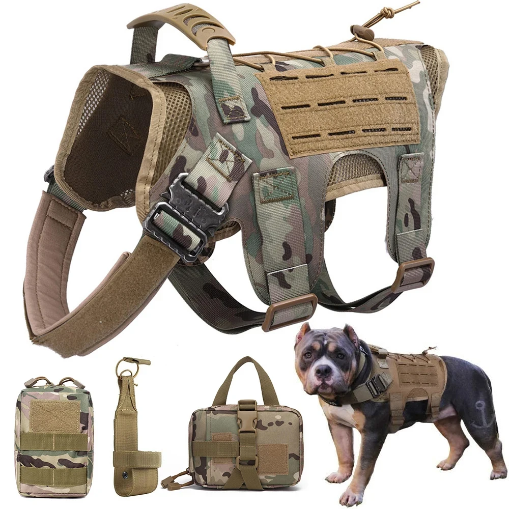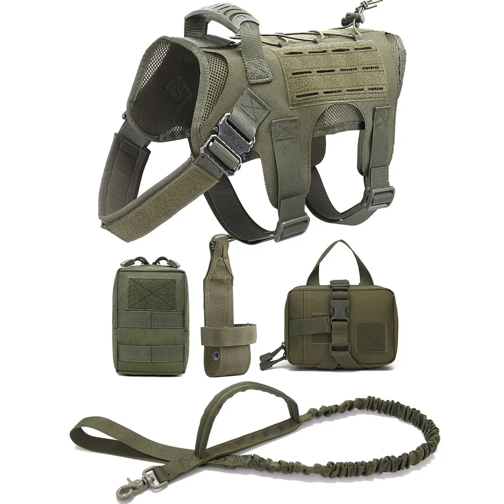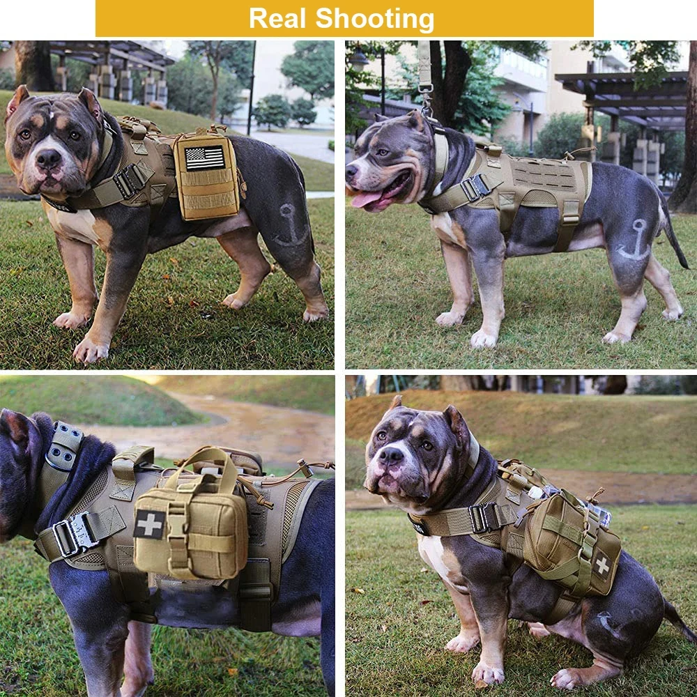 Tactical Dog Harness Pet Training Vest With Bags Military Dog Harness Leash Set Service Dog Vest Safety Lead Walking