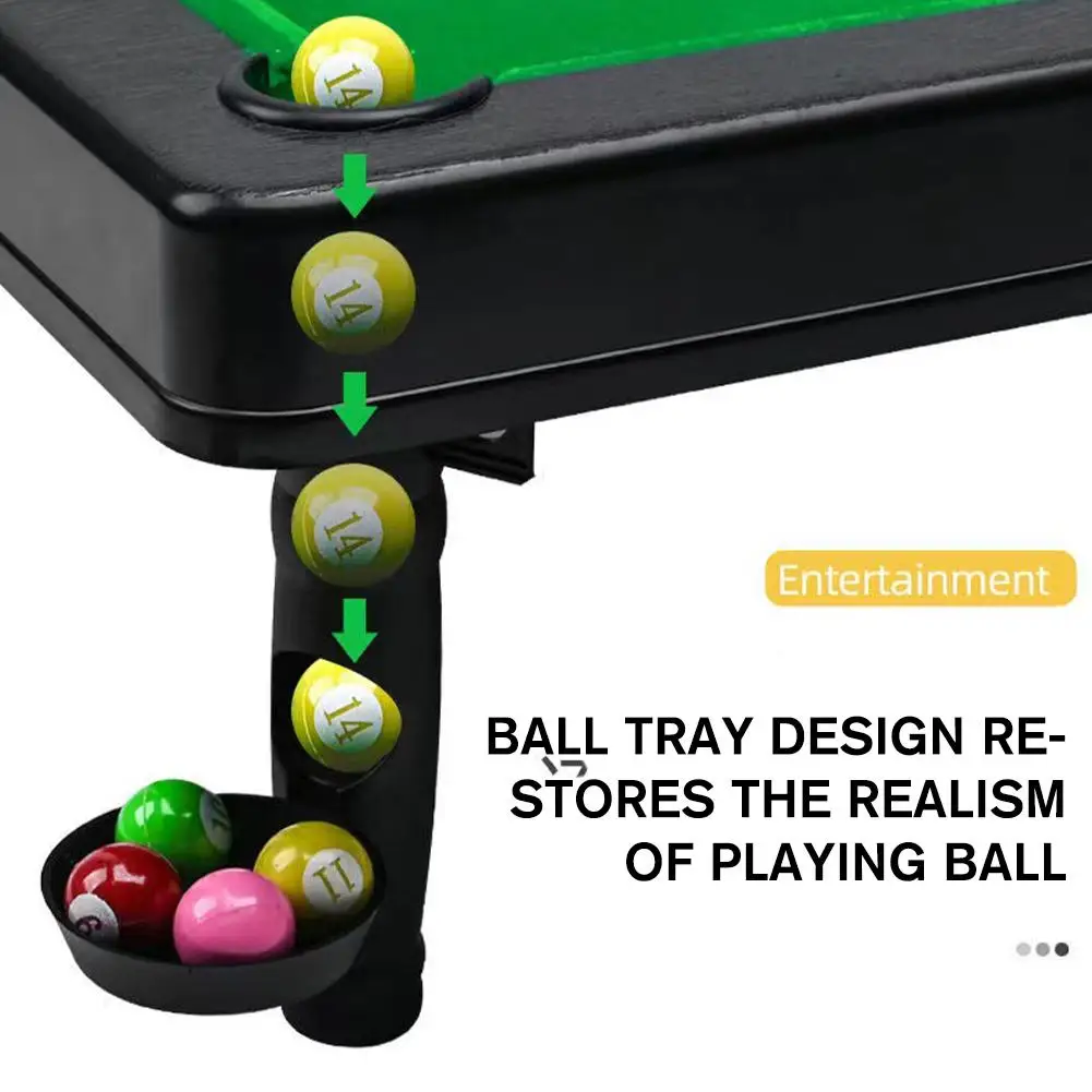 This mini tabletop billiards toy is a small and exquisite game tool that can be placed on the table to start playing directly. It is only the size of a palm and is perfect for easy use in a desk, scrivania, or home entertainment room.