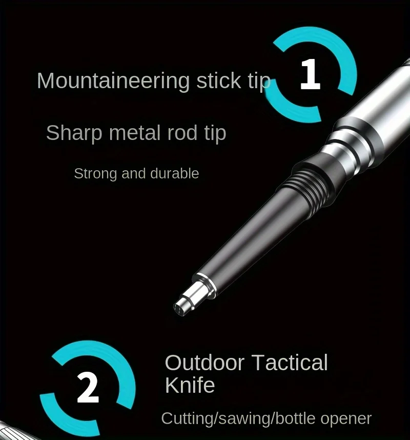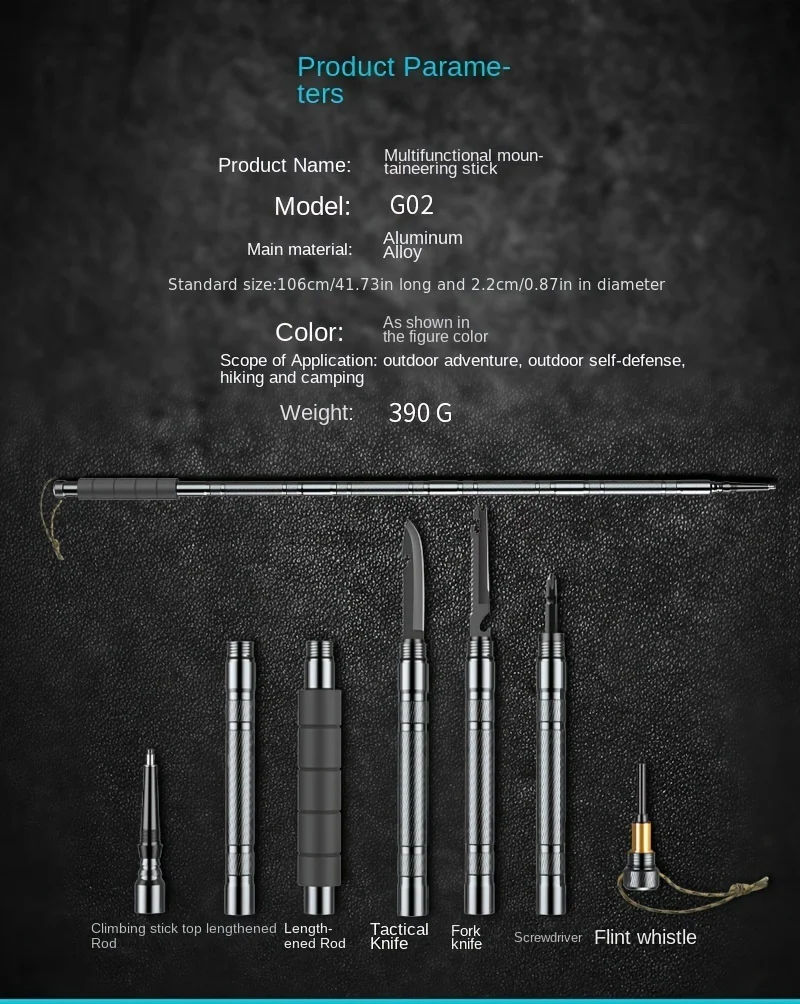 This content is about a multi-functional mountaineering cane that can be used for various outdoor activities like hiking and camping. It can also be used as a self-defense stick and has features like a screwdriver and crutch. This set is designed for mountain adventurers looking for a versatile piece of equipment to assist them in their outdoor journeys.