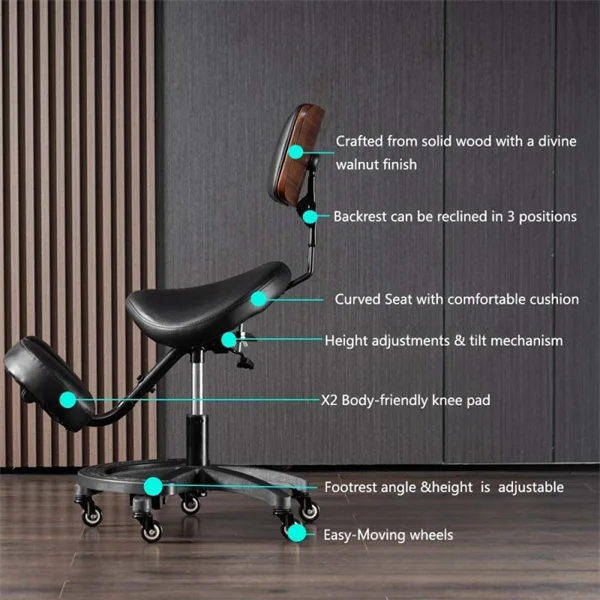 Sgabello da sella ergonomico per ufficio, sedia inginocchiata con supporto per la schiena, sedia inginocchiata regolabile e resistente per salone spa dentale