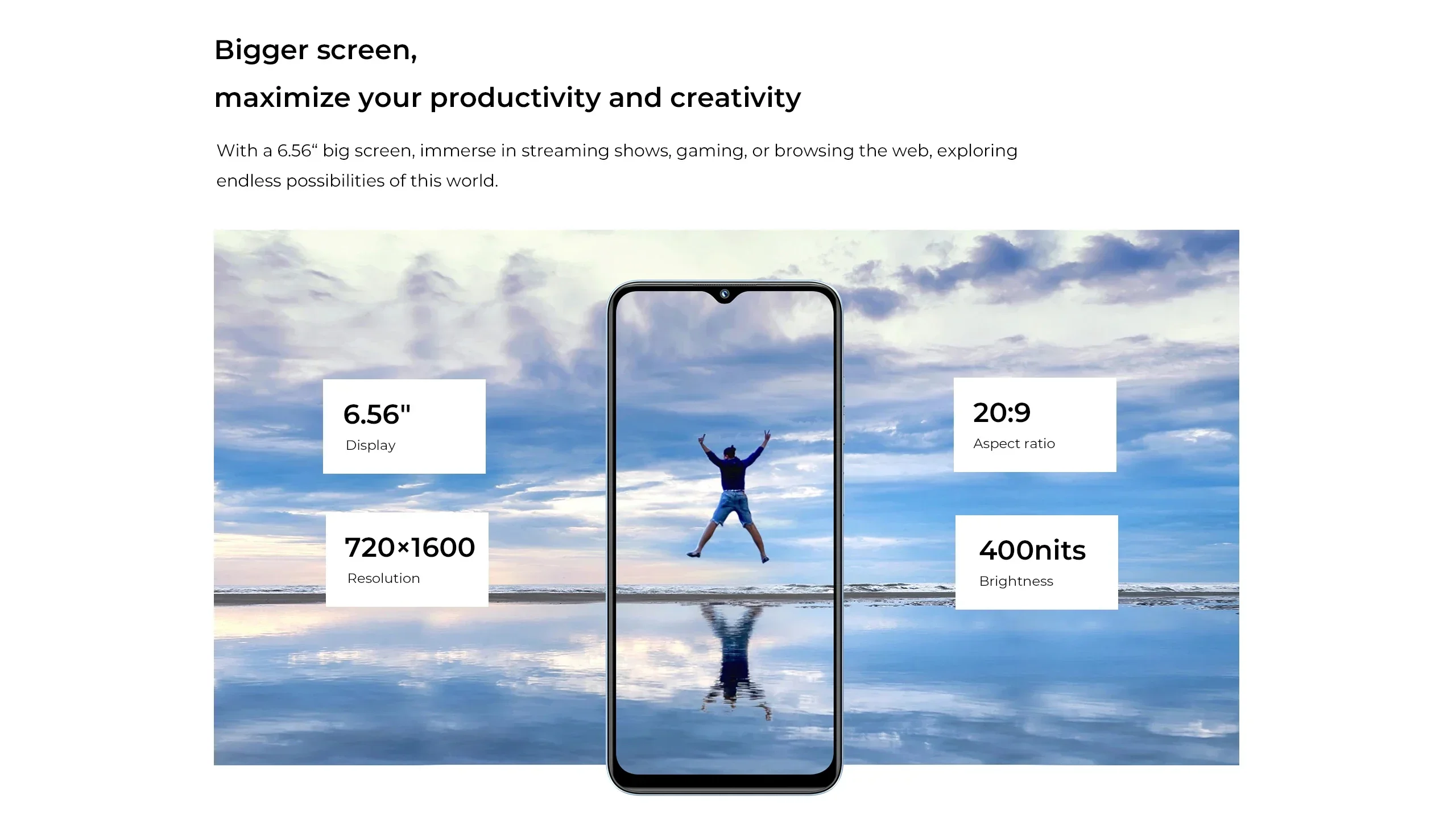 4GB RAM +128GB ROM 6.56” HD+ display T606 Octa Core |