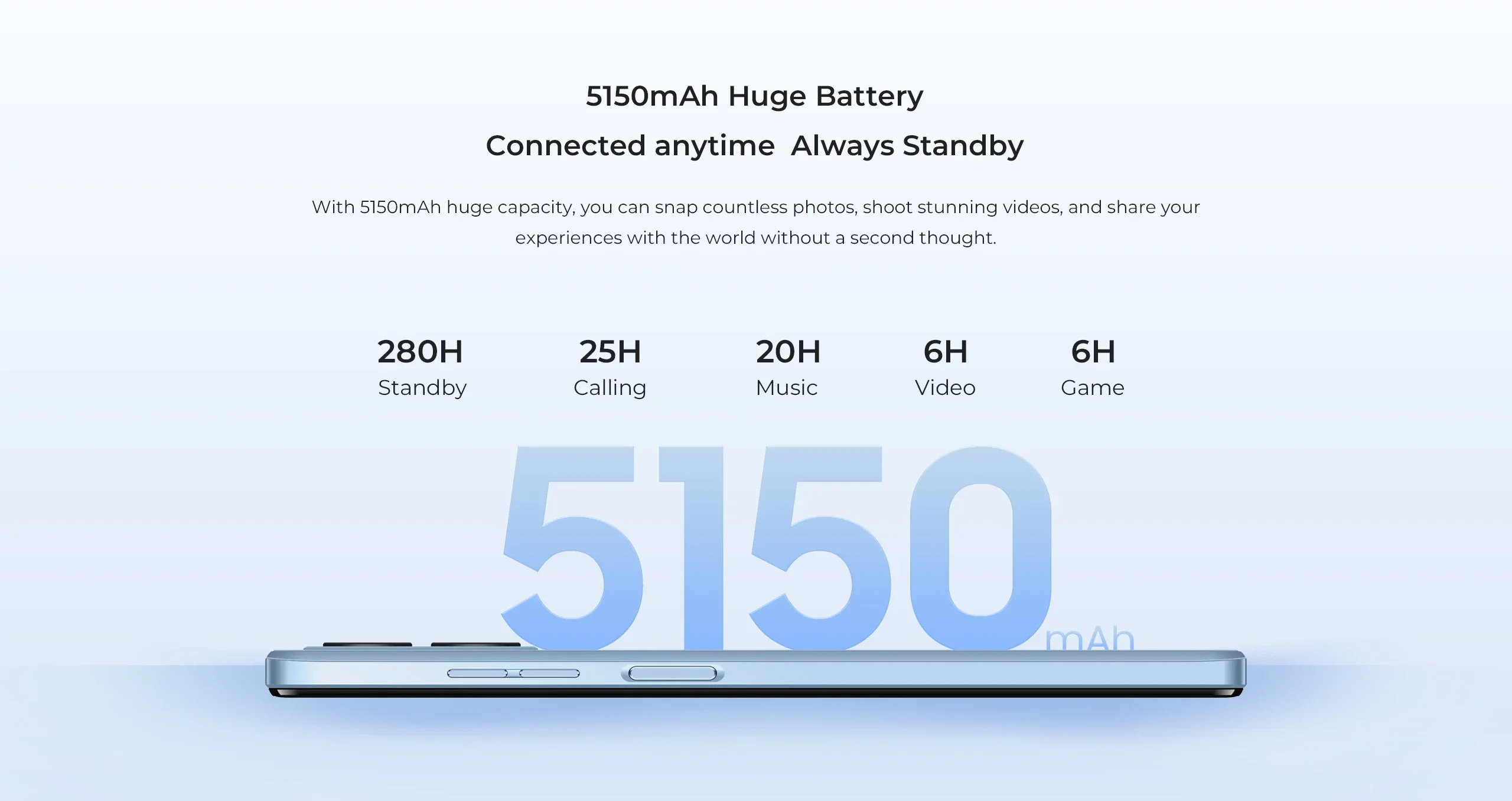 Caratteristiche: 5150Batteria MAH Android 13.0 5MP Front Camera 13MP Rear Camera
