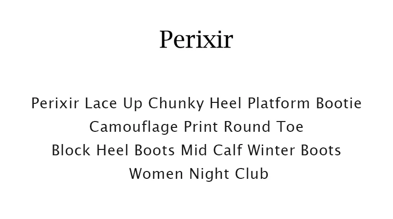 Introducing the Perixir Lace Up Chunky Heel Platform Bootie in a trendy camouflage print and round toe design. Elevate your style with these fashion-forward booties that not only make a statement but also provide comfort and stability with their chunky heel and platform sole. Whether you’re pairing them with jeans or a dress, these boots are sure to turn heads and make you stand out from the crowd. Shop the Perixir Lace Up Chunky Heel Platform Bootie in camouflage print today and step up your shoe game!